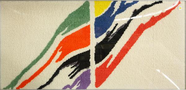 Framed Modernist carpet, American (20th century), unsigned, overall: 42''h x 80''w