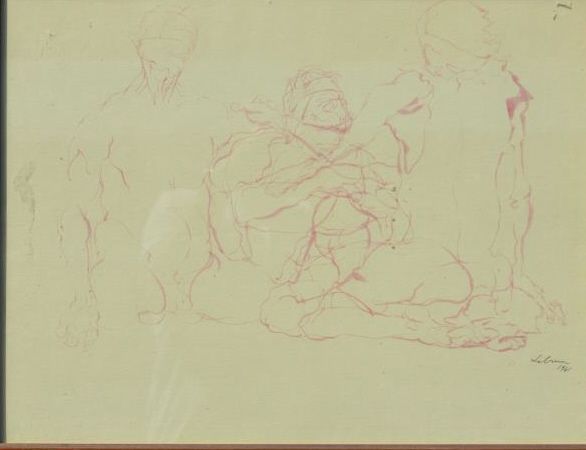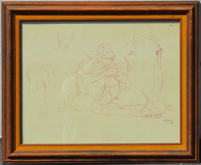 Modernist watercolor of man morphing, signed Lebrun, dated 1958. 19-1/2” by 25-1/2”. Nicely framed and matted. Very good condition. Rico Lebrun (1900 – 1964) was born in Italy, emigrated to the United States in1922 where he taught at the Art Student’s League until 1938 when he settled in California and taught at the Chouinard Art Institute in Los Angeles. In 1952 and 53 he visited Mexico and was influenced by theMexican Masters, 1958 he worked with Joseph Albers at Yale University. Consigned from a local estate. Est: $1,500- $3,000