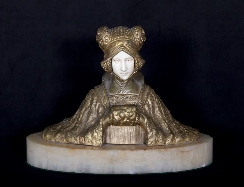 Modesto P. Sanchez, Icon Woman, Ivory and Bronze Sculpture