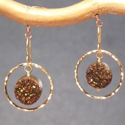 Metal: SilverDruzy inside of hammered circles, about 1-1/4" long. Available in either 14K gold fill or sterling silver. All jewelry is entirely handmade in our studio in New York.