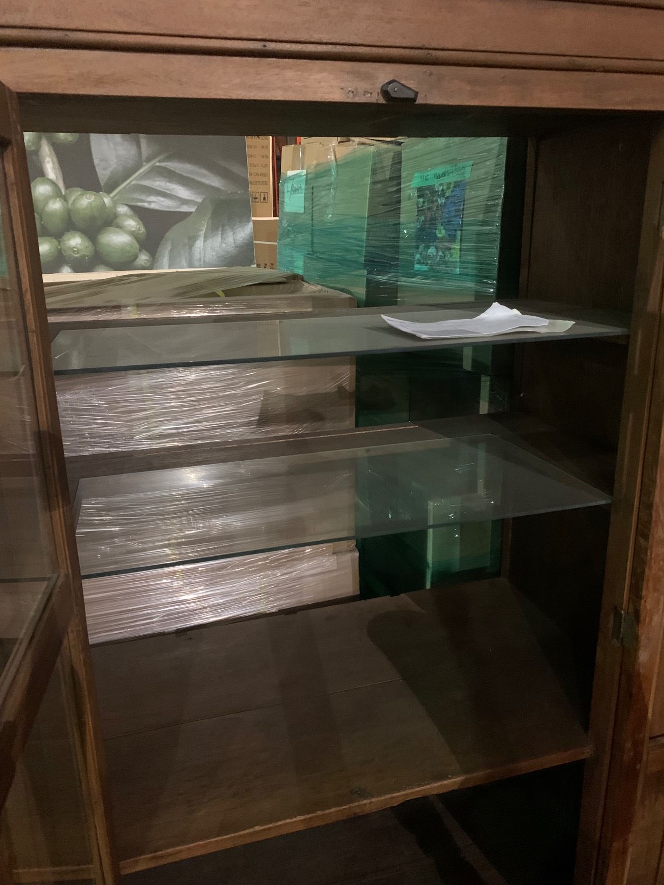 Modified Vintage display cabinet on wheels (Approximately 4ft wide x 25 1/2in depth x 79in high)