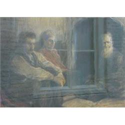 Moerkerk, H. (1879-1949), pastel, Men in front of fireplace, signed b.r., dim. 47 x 63 cm.…
