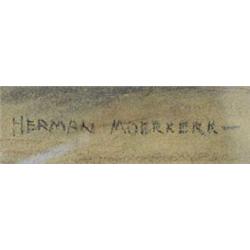 Moerkerk, H. (1879-1949), pastel, Men in front of fireplace, signed b.r., dim. 47 x 63 cm.