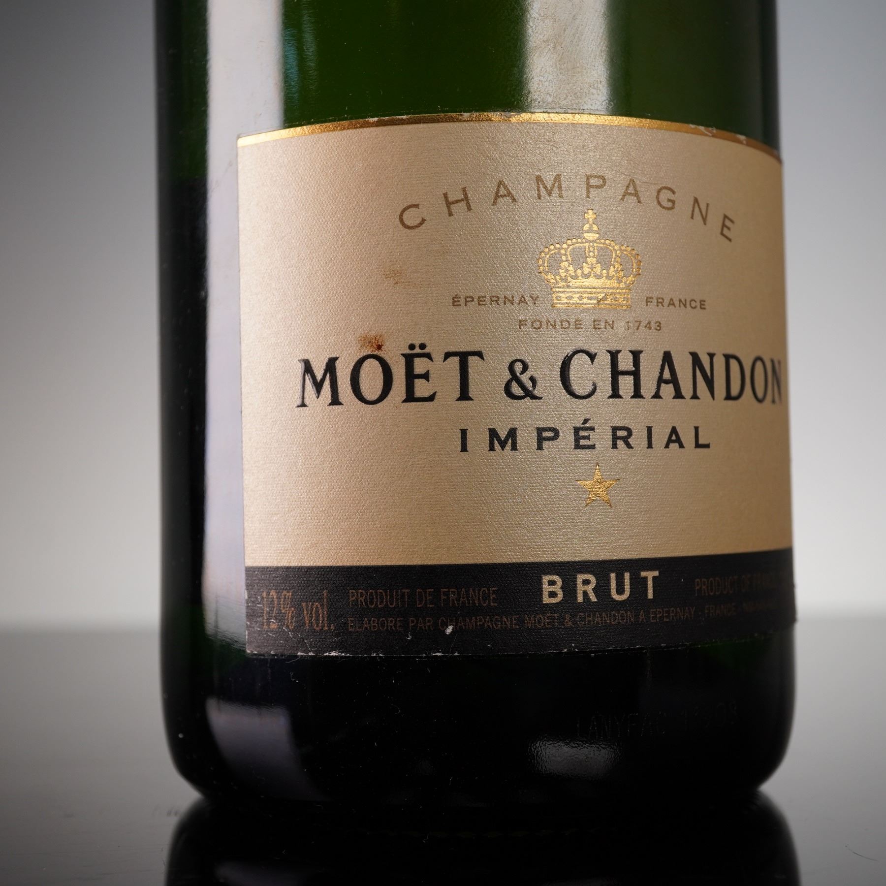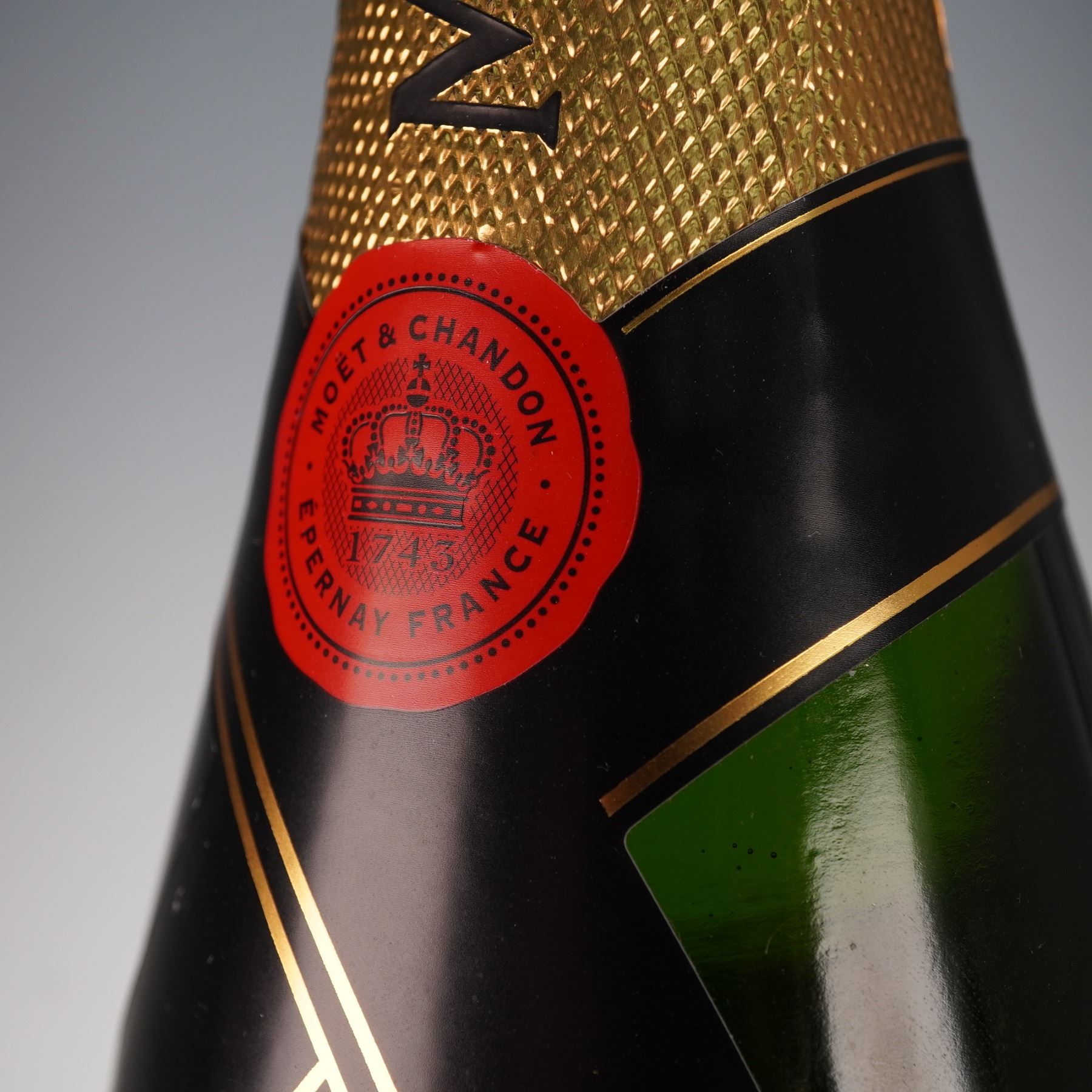 A French crafted champagne made with a harmonious blend of Pinot Noir, Pinot Meunier, and Chardonnay, offering a vibrant effervescence and sophisticated palate. The bottle's dark green glass is adorned with a gold foil capsule embossed with the Moet & Chandon name, accompanied by a red seal that accentuates its prestige and authenticity. 12% volume and contains 750 ml. In-house shipping is not available for this lot. Winning Bidders will have to arrange to pick up their purchases at the Lion and Unicorn Auction Studios at 200 Oakwood Ln. Suite 200 Hollywood, Florida 33020, or make arrangements with their own third-party shipper. A local third-party shipper that can be contacted directly for a domestic shipping quote is: First Class Shipping Center 7826 NW 44th Street Sunrise, FL 33351 Tel: 754-800-7674 Fax : 954-999-5166 Email: 1shippingcenter@gmail.com URL: https://www.1shippingcenter.com.