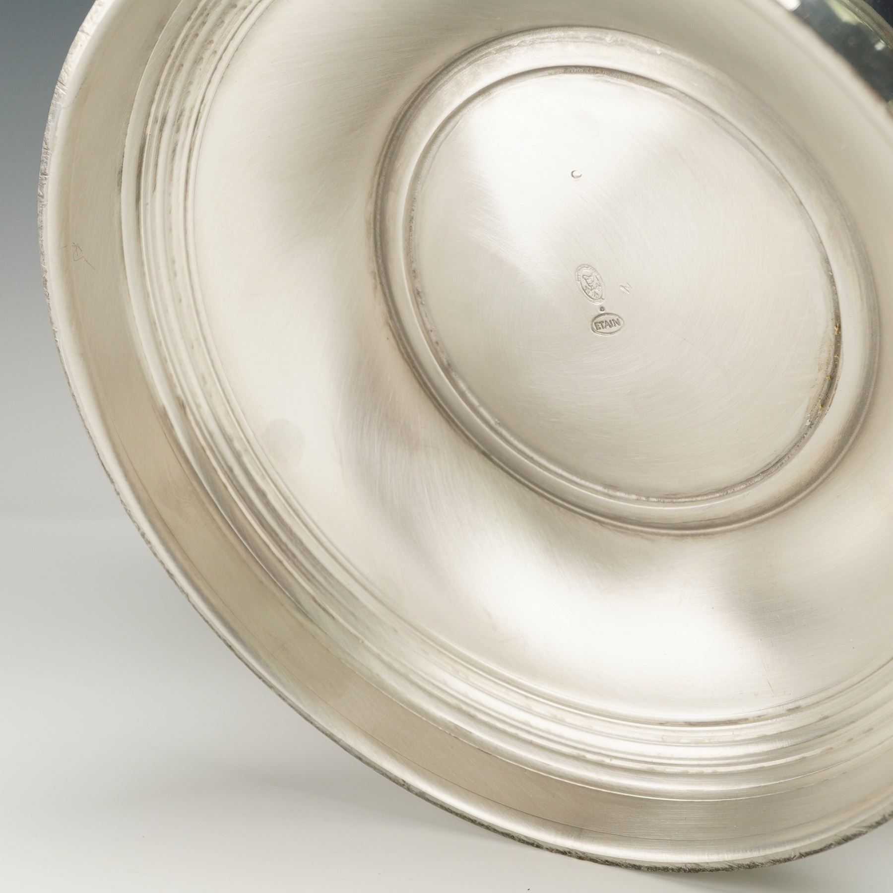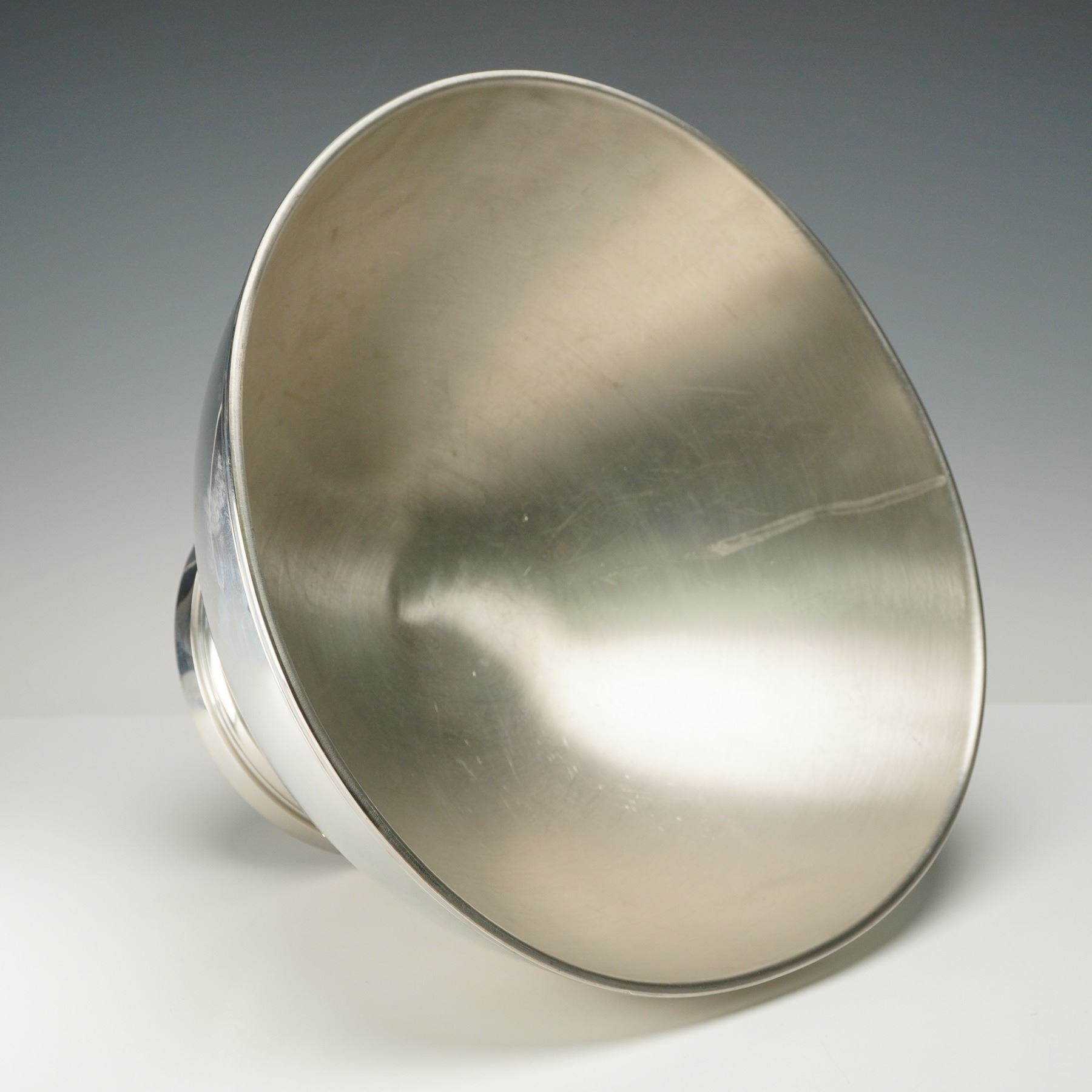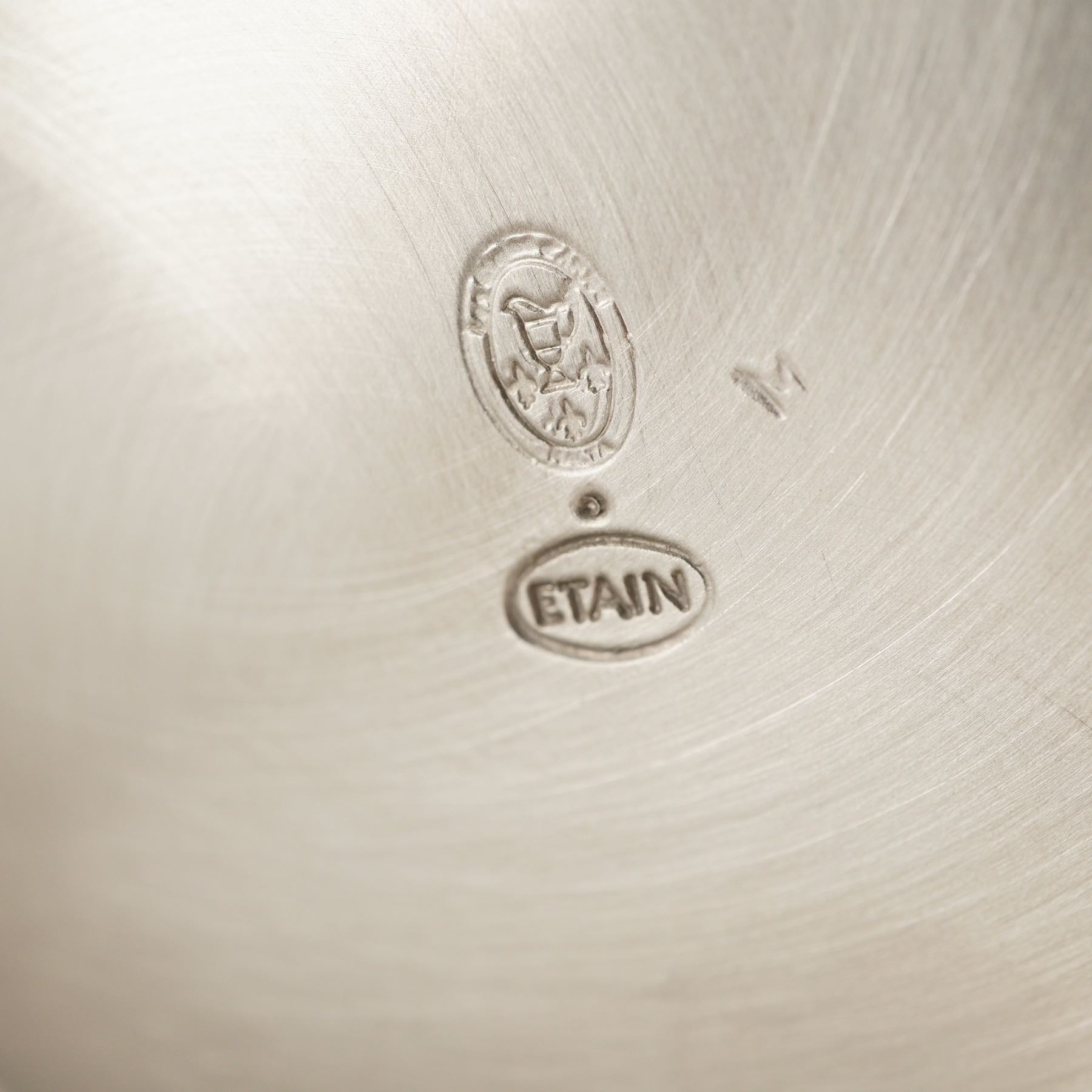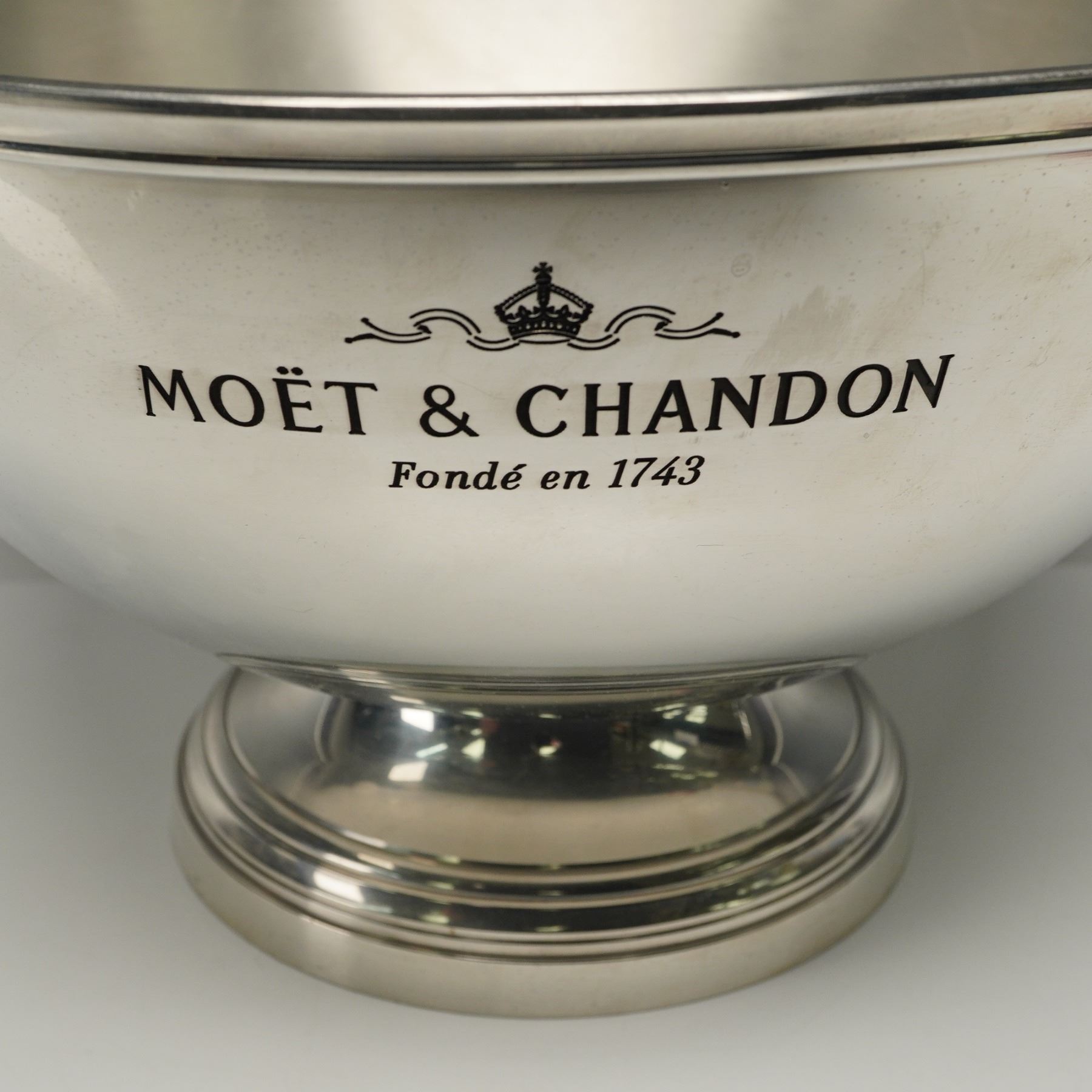 Crafted in gleaming pewter, elegantly designed in a classic flared bowl form with a stepped pedestal base. The exterior bears the distinctive Moet & Chandon logo and crown emblem with the inscription "Fonde en 1743," signifying the esteemed French champagne house's founding date. The underside is marked "ETAIN," accompanied by a French pewter hallmark, attesting to its authenticity and material composition. A refined and functional piece, perfect for chilling bottles in sophisticated style during celebratory occasions.
