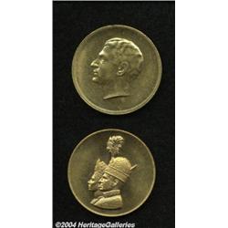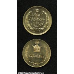 Mohamed Shah gold Medals, two large and impressive issues: Large bust of the Shah/Legends within wreath, SH1344 (1965), 37 mm, 34.83 grams, and Conjoined busts of the Shah and his wife/Large crown and legends in farsi, SH1346 (1967), 36 mm, 35.11 grams. Both medals are scarce official issues and both are brilliant UNC. 2 Coins Important notice: Heritage usually auctions material at the rate of 200-250 lots per hour. On some occasions eBay Live bid software or the Internet may not be able to keep up with the pace of the auction. We recommend placing a realistic absentee bid now as insurance to avoid disappointment. Occasionally the auctioneer may eliminate or reject an eBay Live bid, and the auctioneer may also reopen a lot after the close of the eBay live bidding (usually because we missed an audience bid), and may reject your bid even if it shows you as the winning bidder. By bidding via eBay Live, you agree that Heritage may award the lot to another bidder at its sole discretion under the circumstances described above or any other reasonable circumstances. Also please note that all Heritage lots purchased through eBay Live carry a 20% Buyer's Premium. Please make sure you read the Terms and Conditions before you bid.