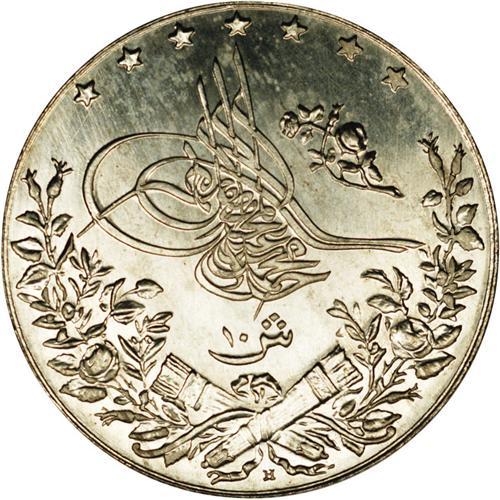 Mohamed V Specimen Proof 10 Piastres 1327AH Year 4H, KM Mohamed V Specimen Proof 10 Piastres 1327AH