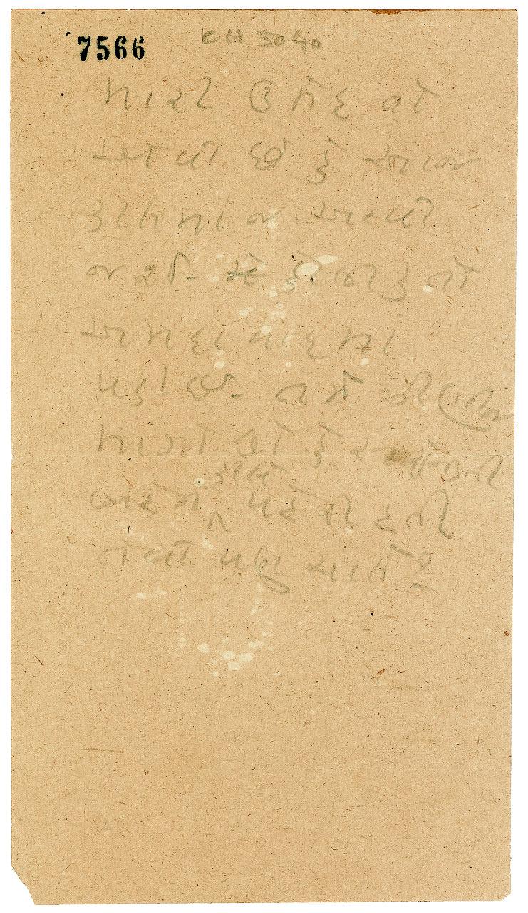 Autograph letter, in Gujarati, one page, 4.5 x 8, no date. Letter to an unidentified recipient. In full (translated): “I hope to receive it in a day or two. Quite a few are in Ahmedead. You want the small ones only, saffron coloured like the ones that sister wore yesterday? Be quiet and don’t fight.” In very good condition, with uniform toning, some light spots of discoloration, small end split along central horizontal fold and small piece missing from lower left corner, and stamp and pencil notation along top edge. Gandhi’s brief message here, apparently concerning a saffron-colored sari, reflects a interestingly sexist method as he tells the recipient to “be quiet.” Unique correspondence from one of India’s pre-eminent political and spiritual leaders.