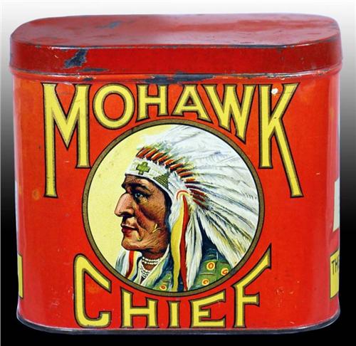 Description Manufactured by the Charles Company in York, Pennsylvania marked "Liberty Can Co., Lancaster, Pennsylvania". Spectacular image of an Indian Chief on front and back with vivid colors and great shine. Some scattered nicks and scratches with light overall wear. Condition (8.4 - 8.8, Excellent). Size 4 - 1/2" x 5 - 1/2" x 6 - 1/2".
