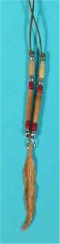The bone feather hangs on a 21" (53.5 cm) wax cotton neck strap with silver-colored and assorted colored glass beads. The feather pendant is 2.5" (6.5 cm) long and 0.5" (1.5 cm) wide.