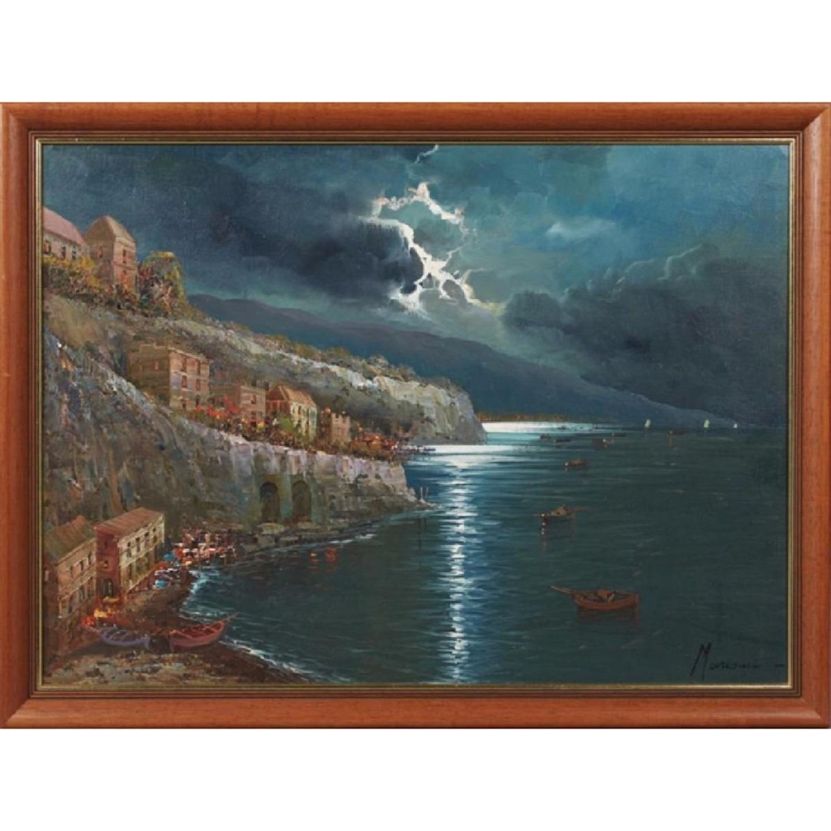Moiriossy, "Night Scene on the Riviera," oil on canvas, signed lower right, presented in a mahogany frame with a gilt liner, H.- 19 in., W.- 27 in.
