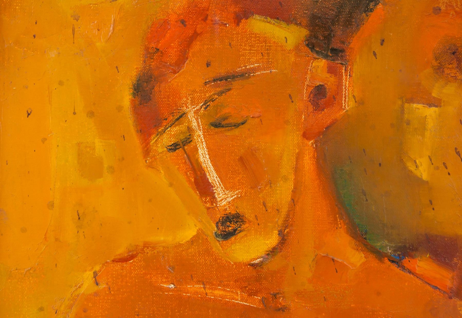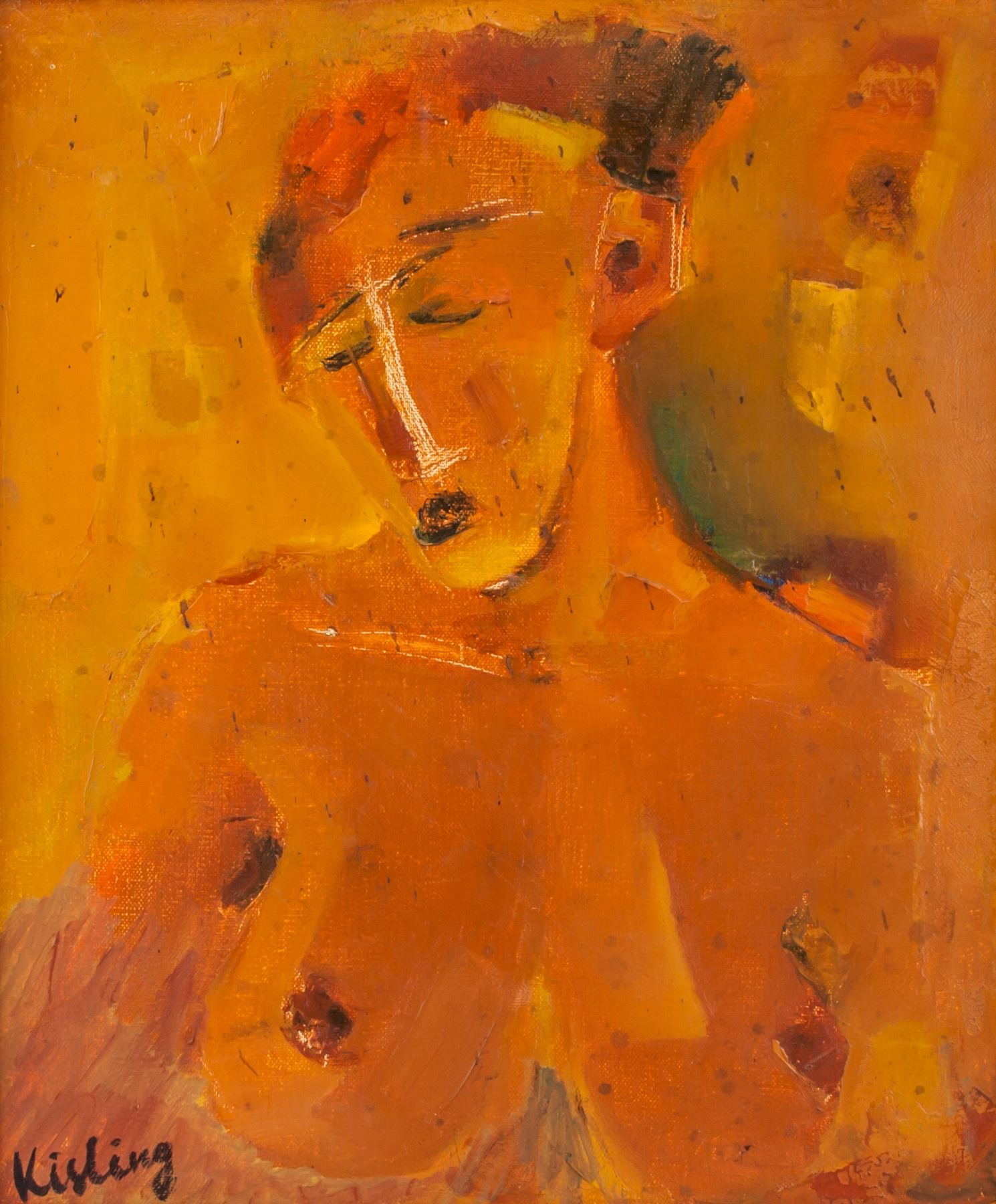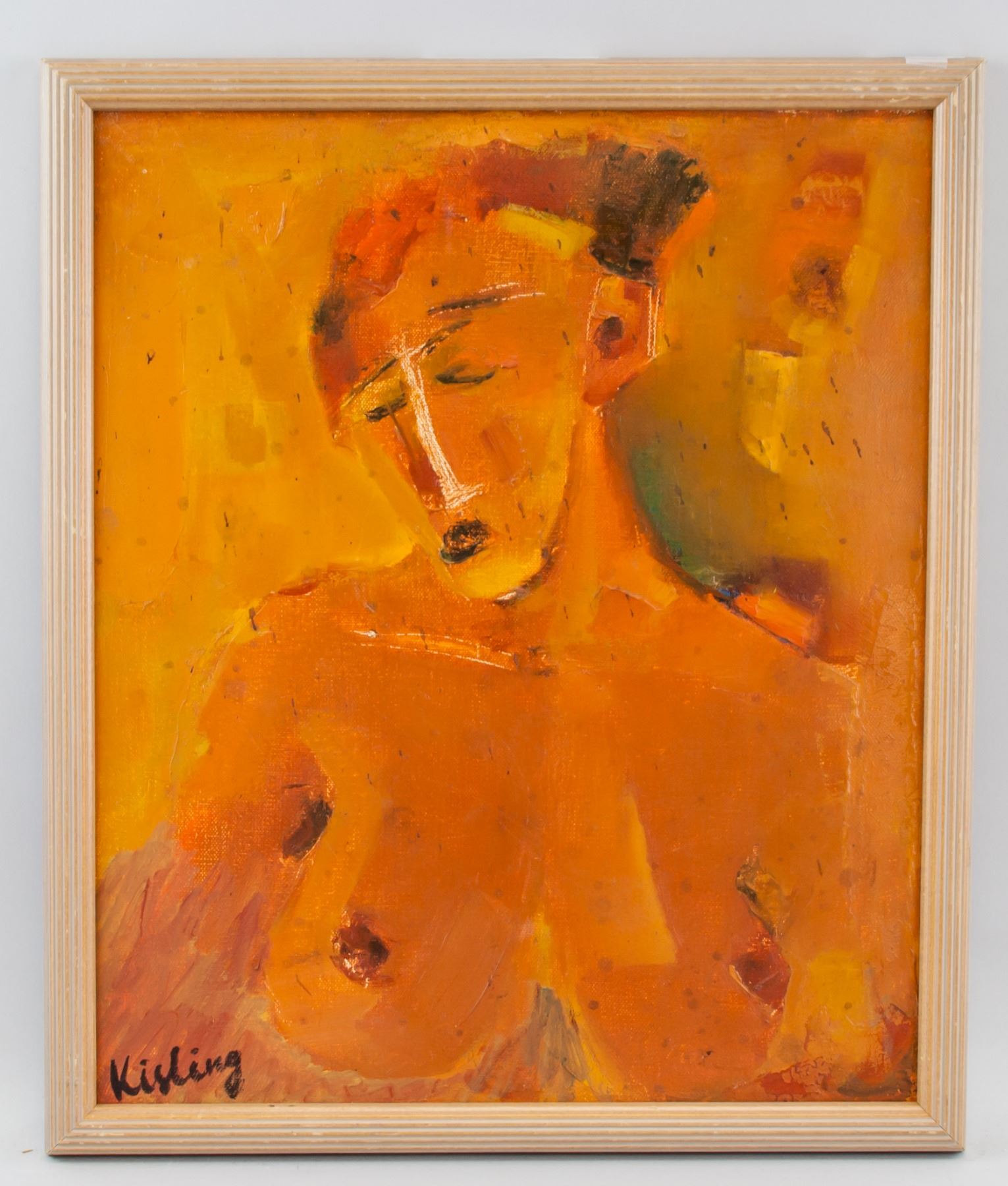 Oil on canvas, framed. Featuring an orange color portrait. Signed Kisling on the lower left corner. Attributed to Moise Kisling (1891-1953, French-Polish). 48 x 41 cm (18.9 x 16.1 inches). PROVENANCE: Southern Ontario estate