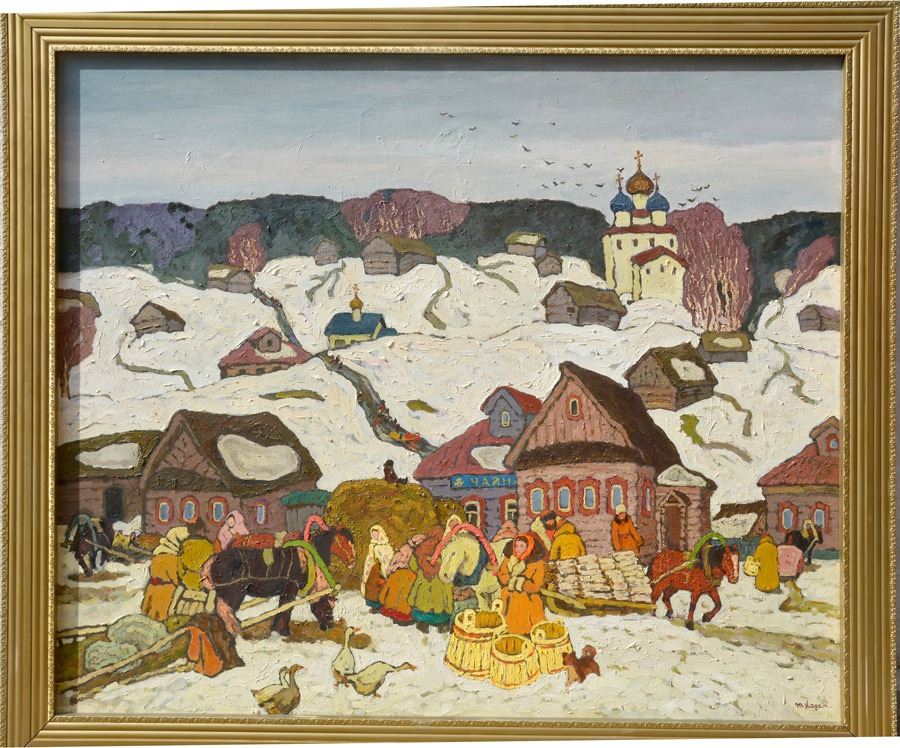 Moisey Kogan, Winter in the Russian Village, Oil Painting