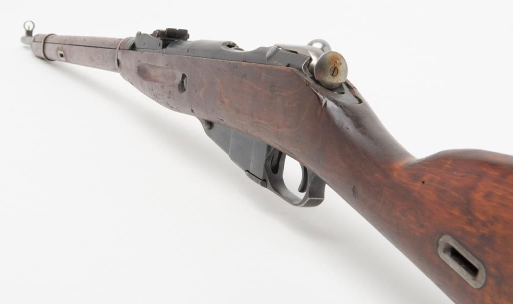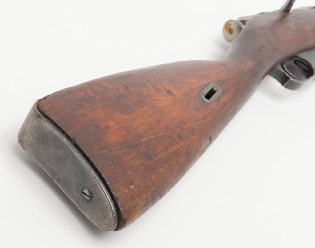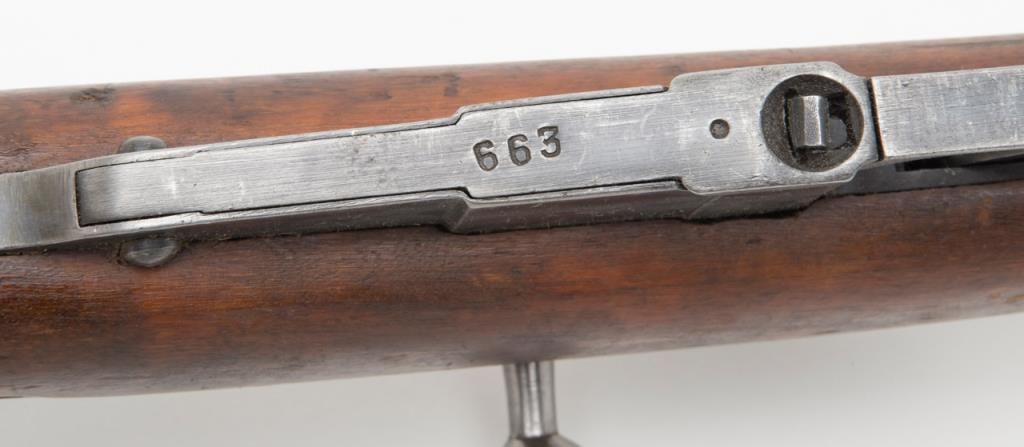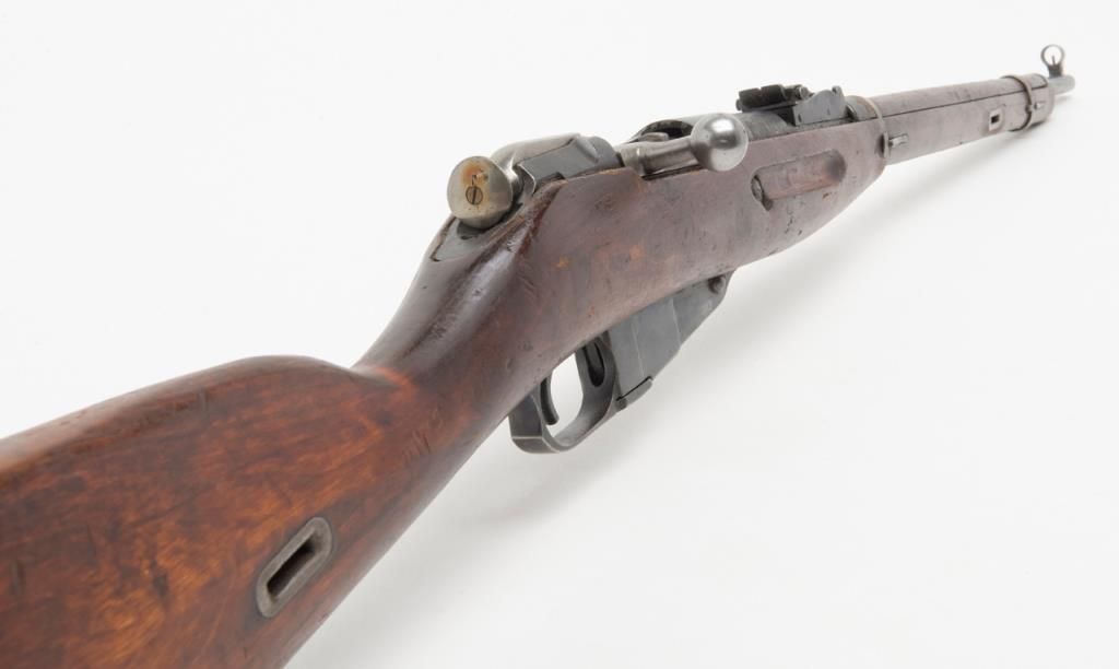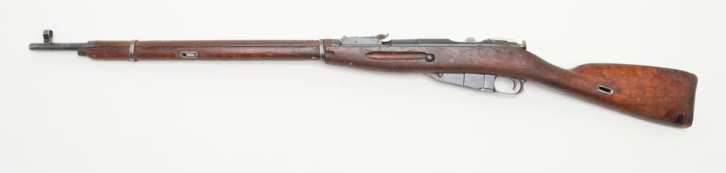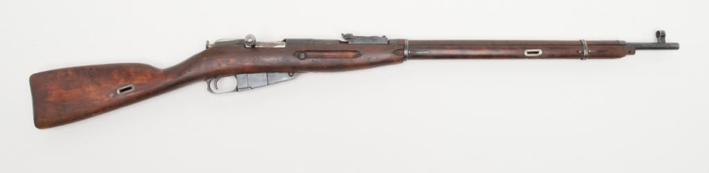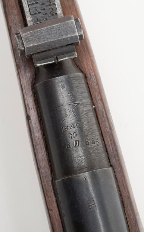 Moisin Nagant bolt action rifle, 7.65 mm caliber, Serial #VL663. The rifle is in overall good condition with a 29” import marked barrel. The rifle retains the majority of its military finish with a Russian star proof and 1942 date on theaction. The rifle retains a hooded post front and graduate tangent rear sight. The smooth wood stocks are in overall good condition with mars and compressions consistent with use. The bore is good, the action crisp and markings sharp on thisrifle.(C+R/PPT). Est. $150-$300.