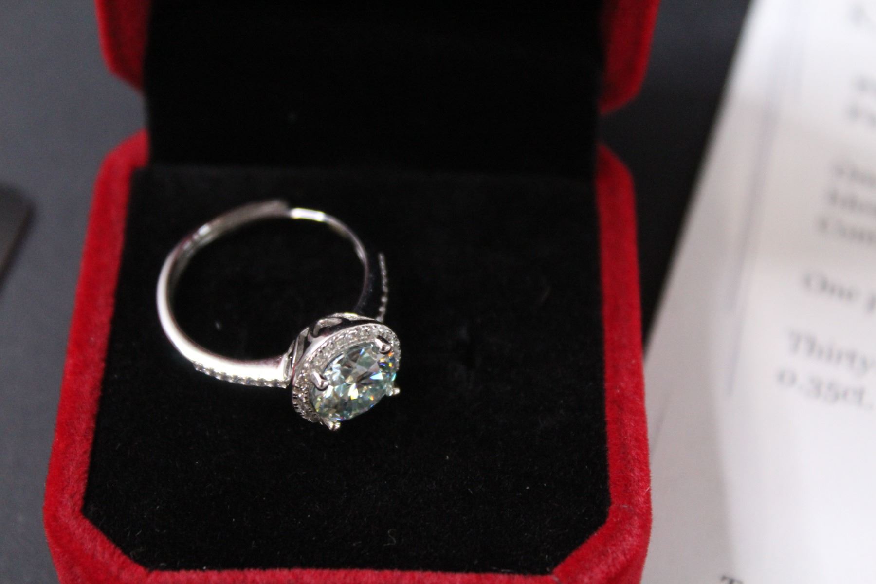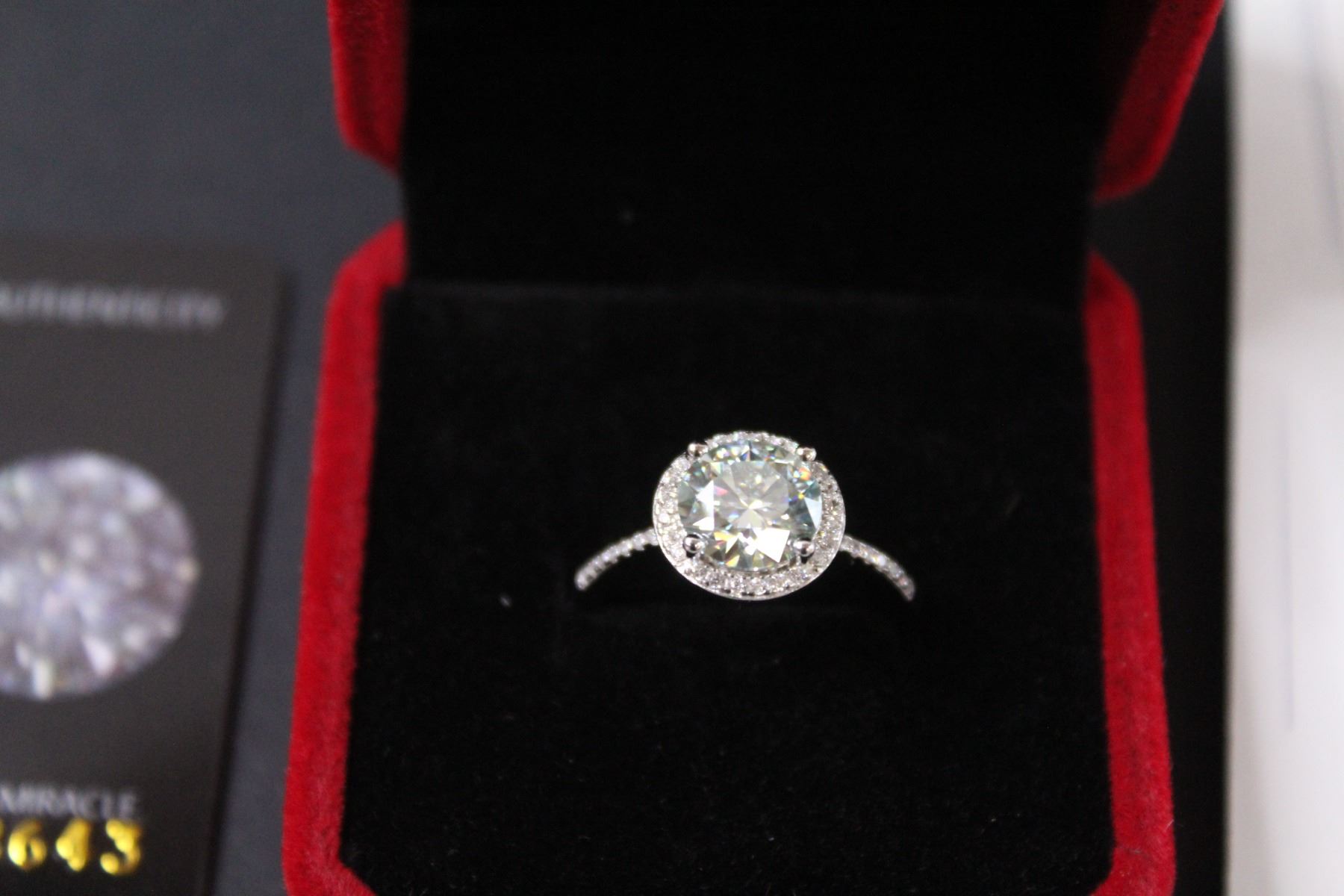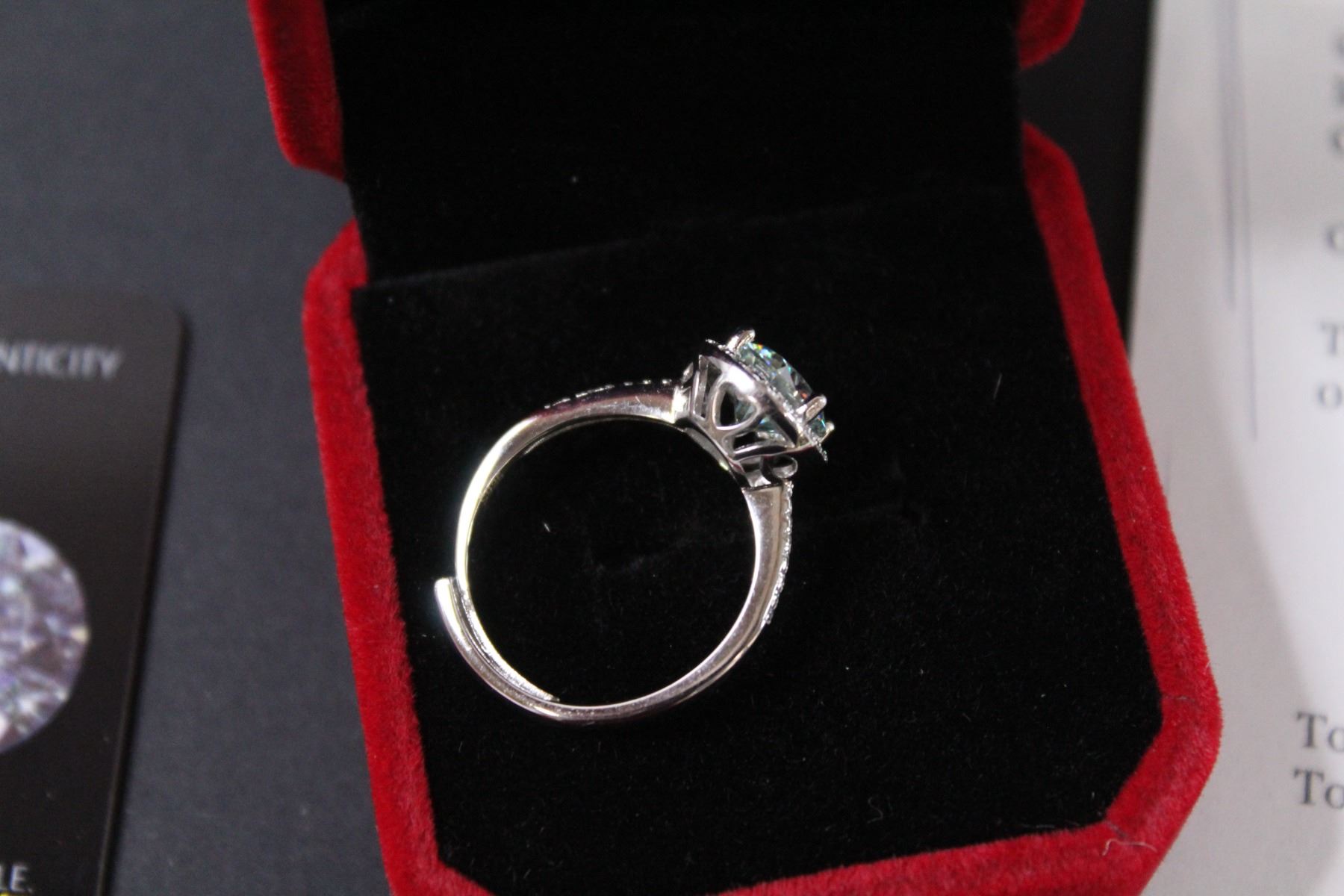 ^ Moissanite 2 ct. GRA Certified Round Brilliant Cut Stone VVS D Color Set in Sterling Silver - Ring Size Adjustable