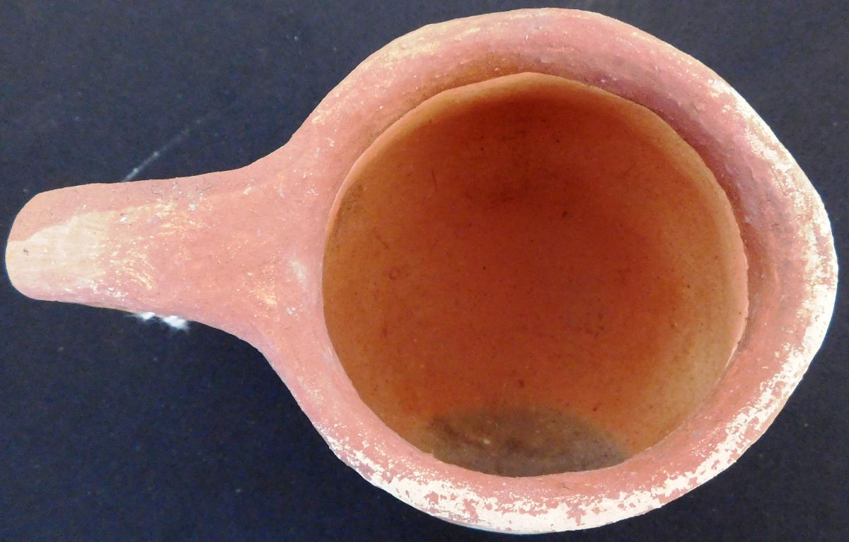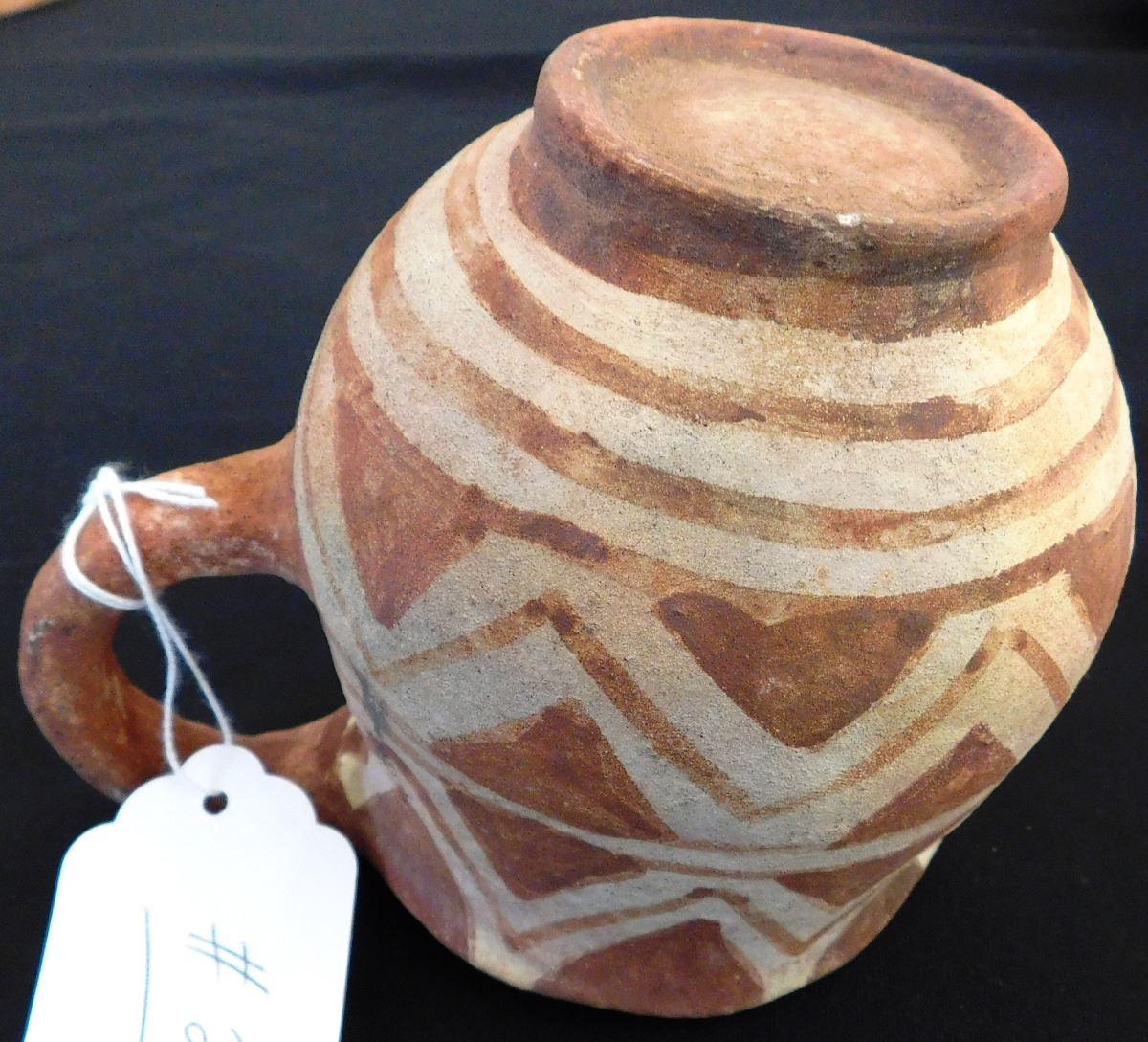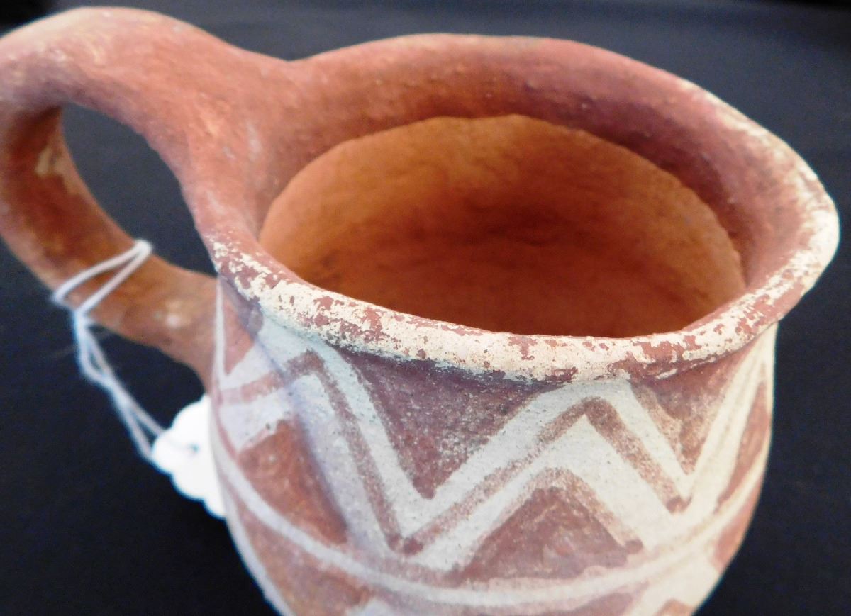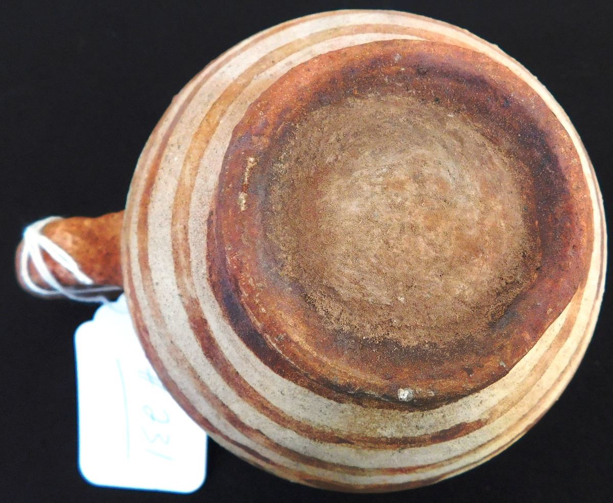 Mojave Pitcher, circa 1890s, made of clay and paint. Item measures 6 x5 inches and is from the Colorado River, California and Arizona area. Condition: Very good, some paint loss on lip, see images. Shipping: $24.00, requires double-box.