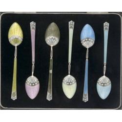 angol, 1932 - 33 londoni importjegy, ezüst, 925 -ös finomság, "HIH" gyártójellel, szecessziós forma, különbözo színu, vésettaljú lüszter zománcos díszítéssel, kis zománc sérüléssel, eredeti dobozában, br. 62,8 g; h: 9,8 cm, eredeti dobozában