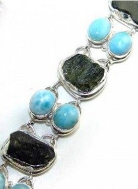 Silver & Moldavite and Larimar Bracelet. Allow 6 to 8 weeks for delivery.