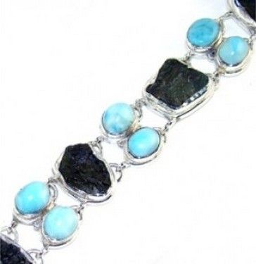 Silver & Moldavite and Larimar Bracelet. Allow 6 to 8 weeks for delivery.