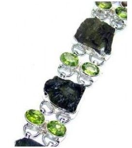 Silver & Moldavite and Peridot Bracelet. Allow 6 to 8 weeks for delivery.