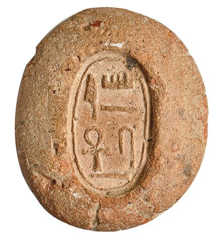 Molde para realizar anillos. Imperio nuevo (alrededor de 1550-1070 a.C.). Contiene el texto jeroglífico que traduce: 'Amón, que viva y sea saludable'. Longitud 3,5 cm.