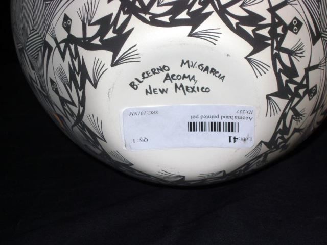 Molded Clay Fineline Pot, By Cerno/MV Garcia, Acoma, NM Measuring 6" High x 8" Diam., Orif. at 1 1/4