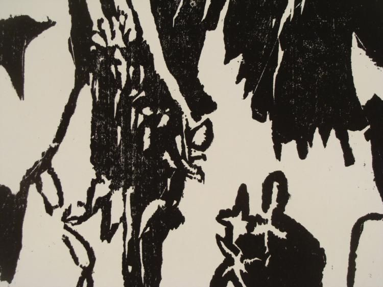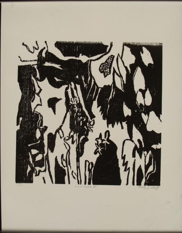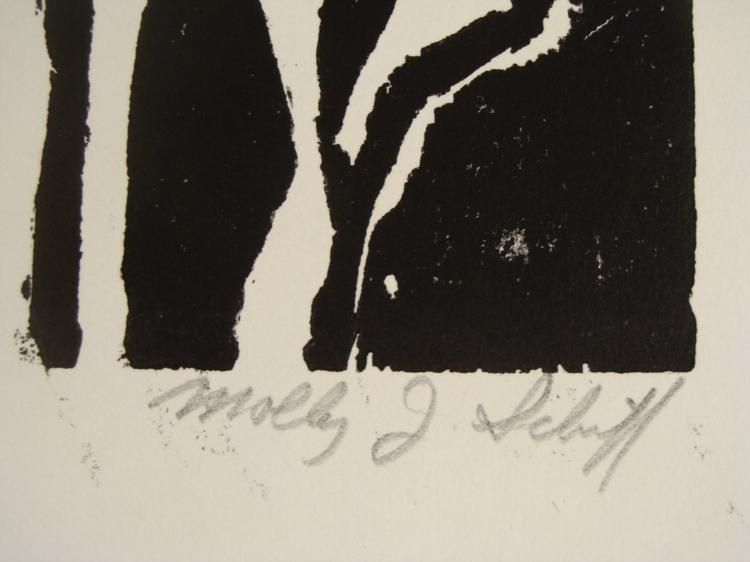 This art print is like peering into a deep forest, with sharply contrasting branches. * Artist: Molly J. SchiffSignature: In pencil, lower rightTitle: "Forest View I"Edition: 10/12Medium: Wood block print on paperSheet size: 15 1/2 x 19 1/2 inchesCondition: Excellent; some smudge marks * Molly J. Schiff studied at the School of the Art Institute of Chicago. She draws inspiration from her world travels, which have taken her to over 90 different countries. Her style is free and expressive, and has attracted much attention among galleries and collectors. Her artwork has been exhibited at The Art Institute of Chicago, Loyola Museum of Fine Art (LUMA), the Illinois State Museum, and the Spertus Museum. *
