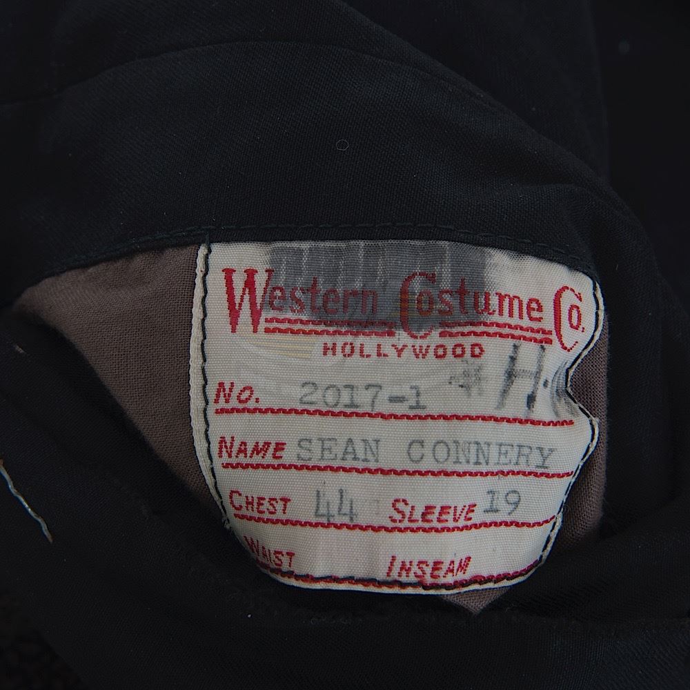 (Paramount Pictures, 1970) This jacket was custom-made by the production for use by Sean Connery as "Jack Kehoe". The heavy brown jacket features a Western Costume Co. tag sewn to the inseam pocket with "Sean Connery" typed on the information line. The jacket has wear from use including fraying along the bottom hem and a small hole on the left sleeve.