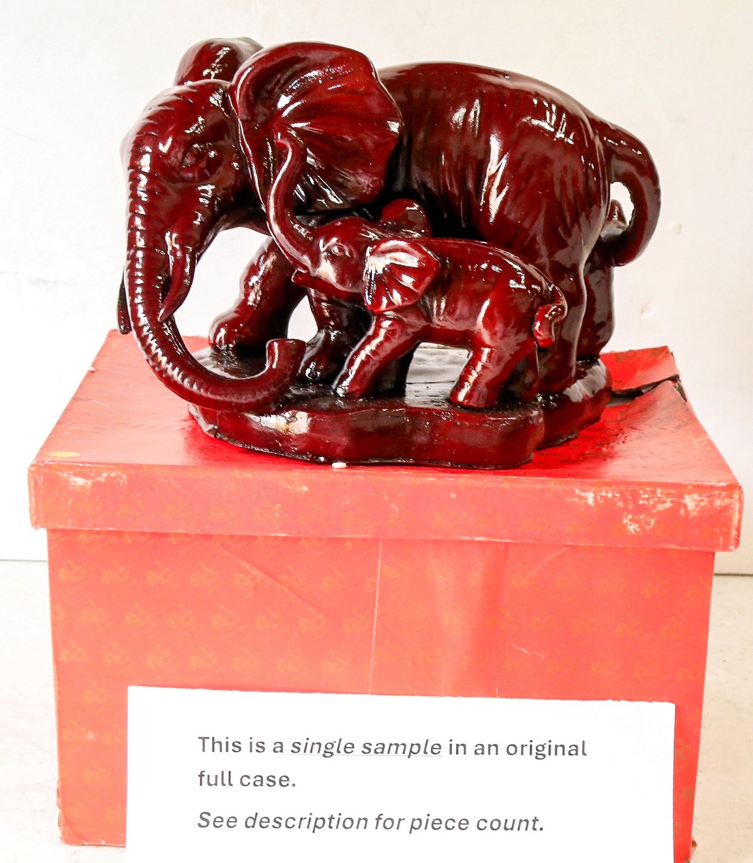Resin elephants with baby measuring 6.75"x 9.5"x 5.75"