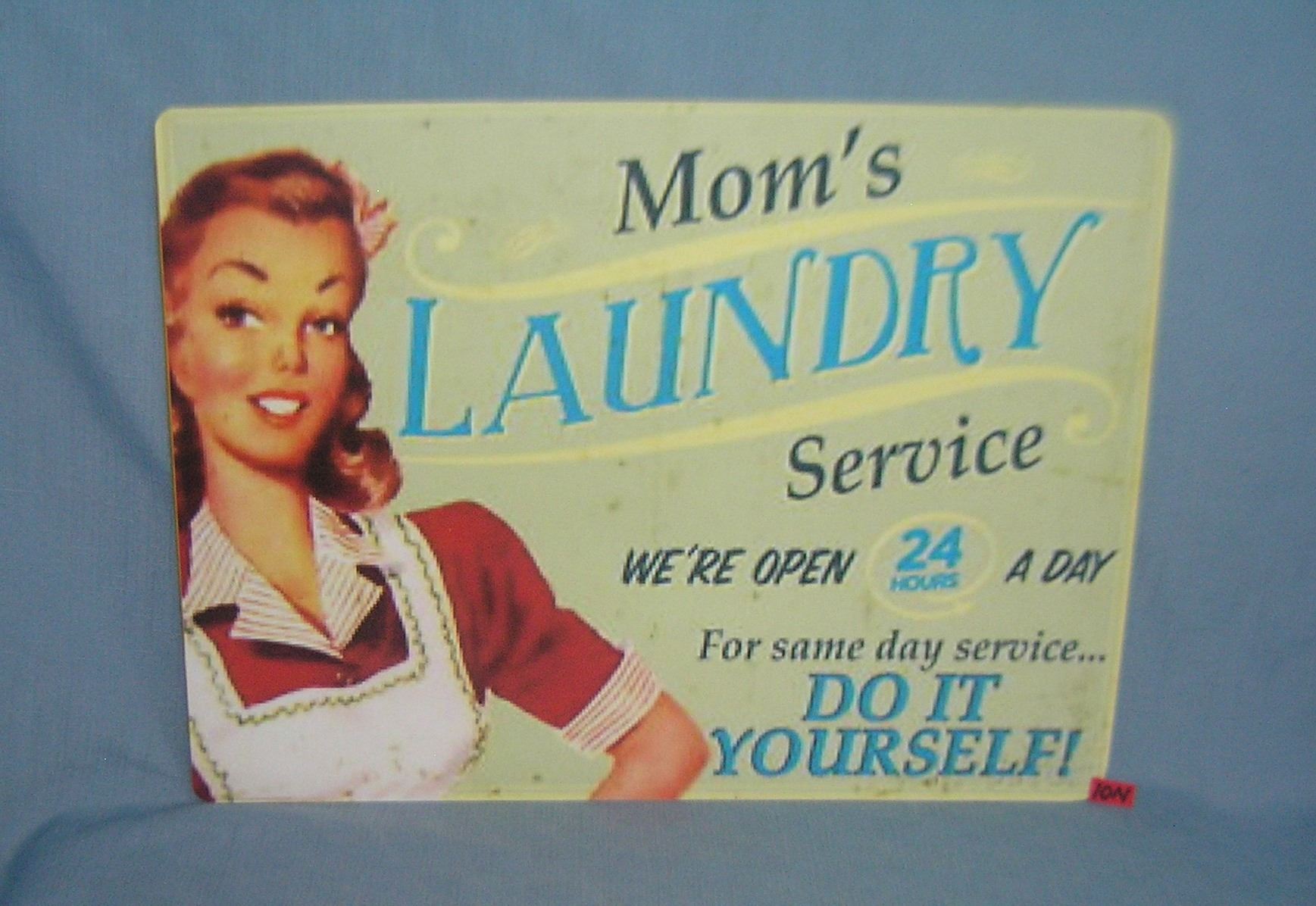 Mom's laundry service 12 by 16 inches retro style advertising sign printed on PVC hard board these signs are auctioned for there decorative and display purposes est. value $45.00-$60.00