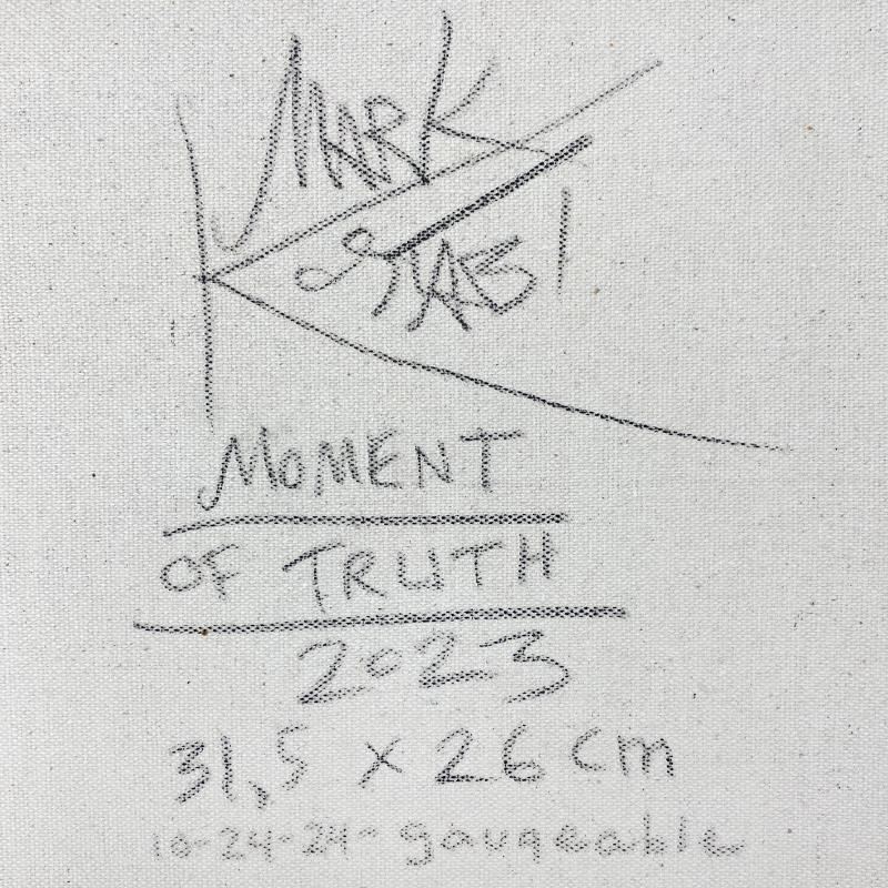 "Moment of Truth" is an original oil painting on canvas by Mark Kostabi, hand signed by the artist. This piece comes framed. Includes Certificate of Authenticity. Measures approx. 22" x 20" (frame), 12" x 10" (image).