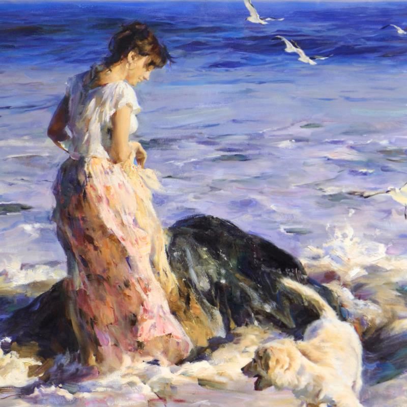 "Moments In The Sun" is a limited edition hand embellished giclee on canvas by the husband and wife team, Mikhail and Inessa Garmash! This piece is numbered and hand signed by the artists! Includes Certificate of Authenticity! Measures approx. 48" x 36" (image).