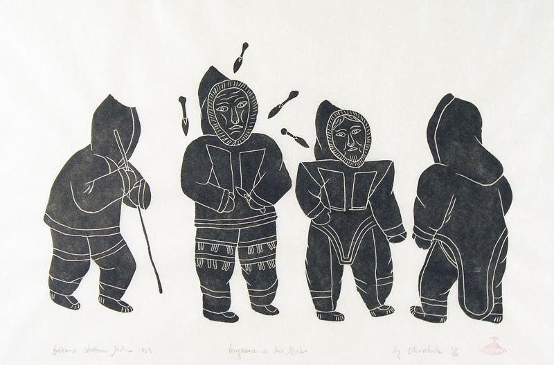 Canadian, Holman Island [1935-1992] VENGEANCE IS HIS MIND; 1969 stonecut on paper; ed. #33/50 13 x 20 in. (33 x 50.8 cm) signed, titled, dated & editioned