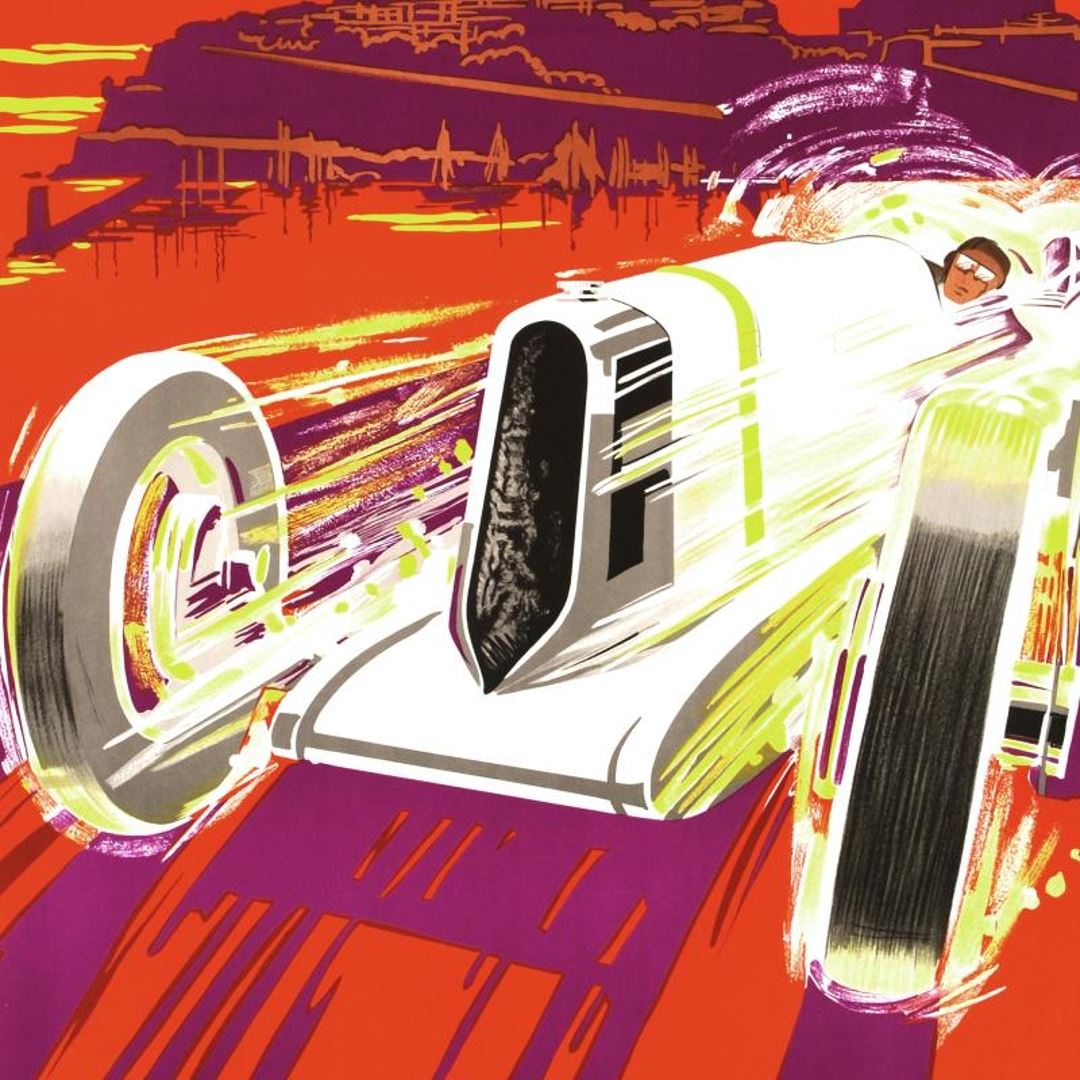 "Monaco Grand Prix 1930" is a hand pulled lithograph on paper by the RE Society, image originally by Robert Falcucci. Includes Certificate of Authenticity! Measures approx. 31" x 47" (with border), 29" x 45" (image).