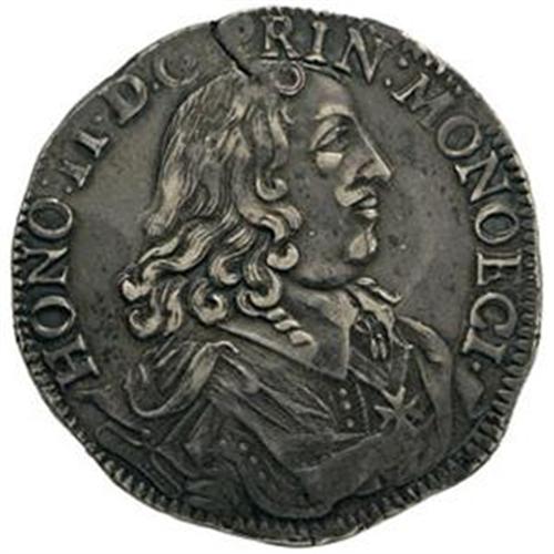 Monete e Medaglie Estere. Monaco. Onorato II Grimaldi (II per. 1641-1662). Scudo 1653. CNI 66/70. RR. AG. Piccola frattura da conio. Bella patina. Splendido ritratto. qSPL.