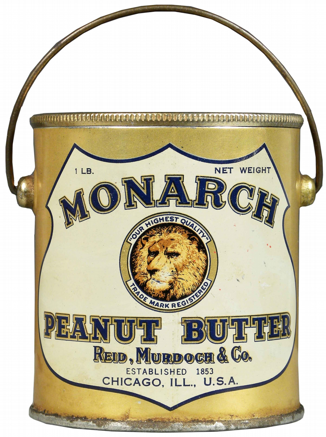 Monarch 1 lb Peanut Butter Pail. Pail has embossed lid and bale. Excellent condition.