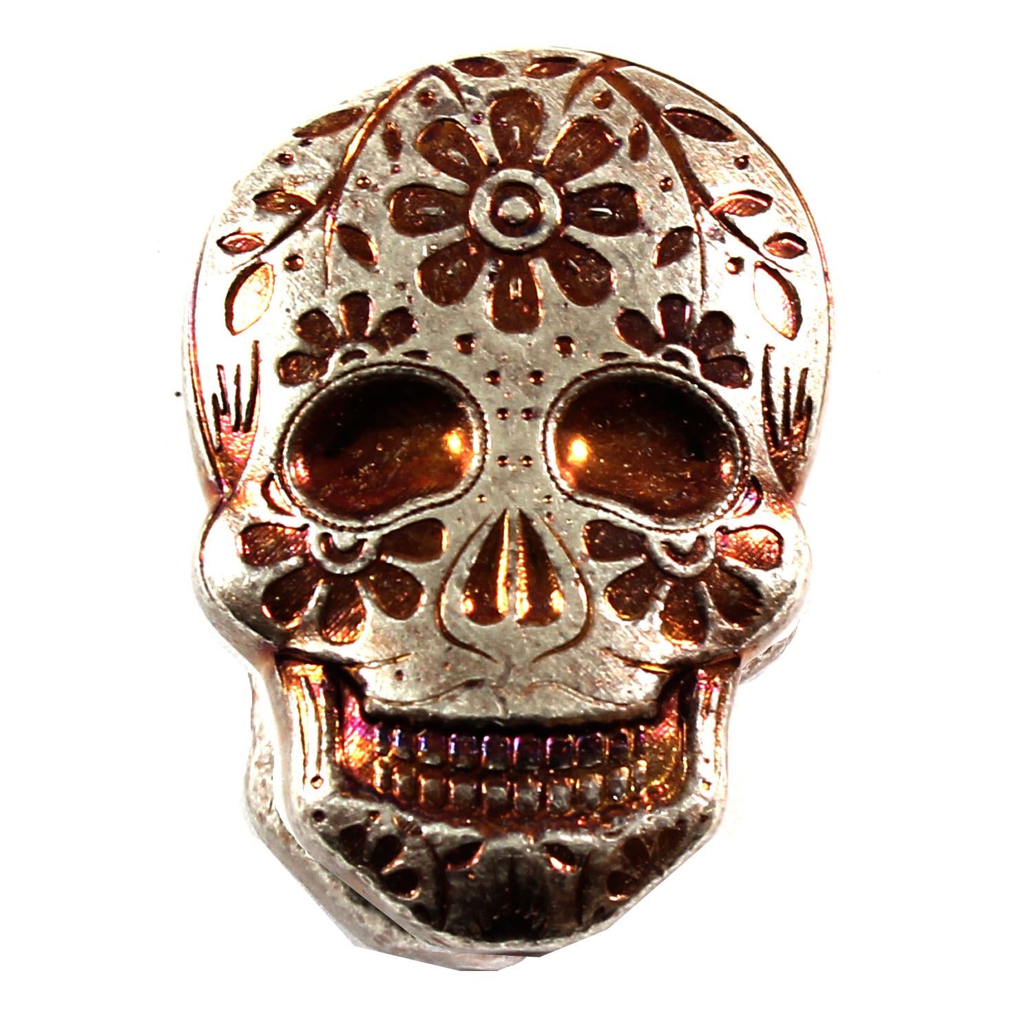 Monarch 2oz Fine Silver Copper Coloured Hand Poured Sugar Skull with Daisy (Tax Exempt)