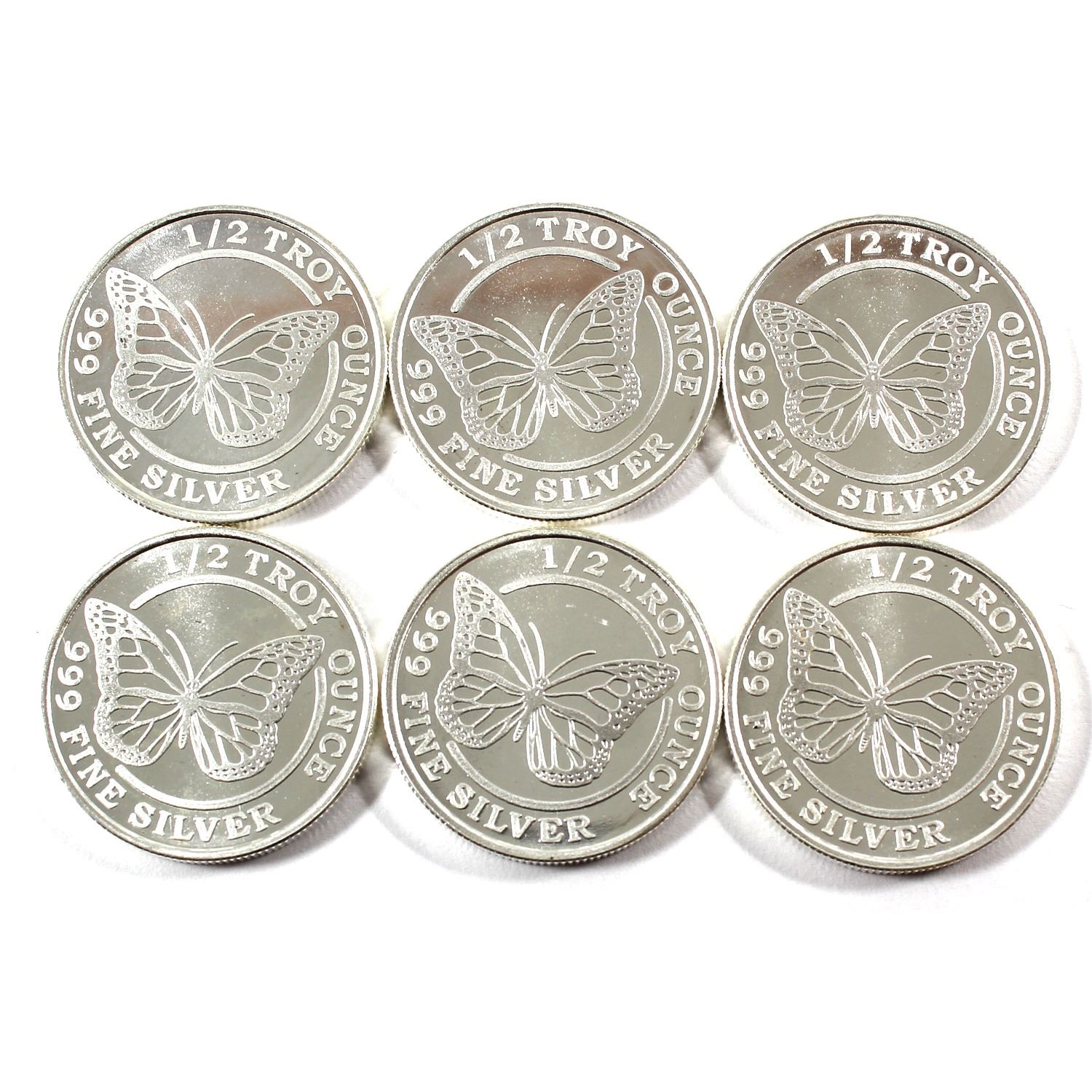 Monarch Precious Metals 1/2oz .999 Fine Silver Butterfly Rounds. 6pcs (TAX Exempt)