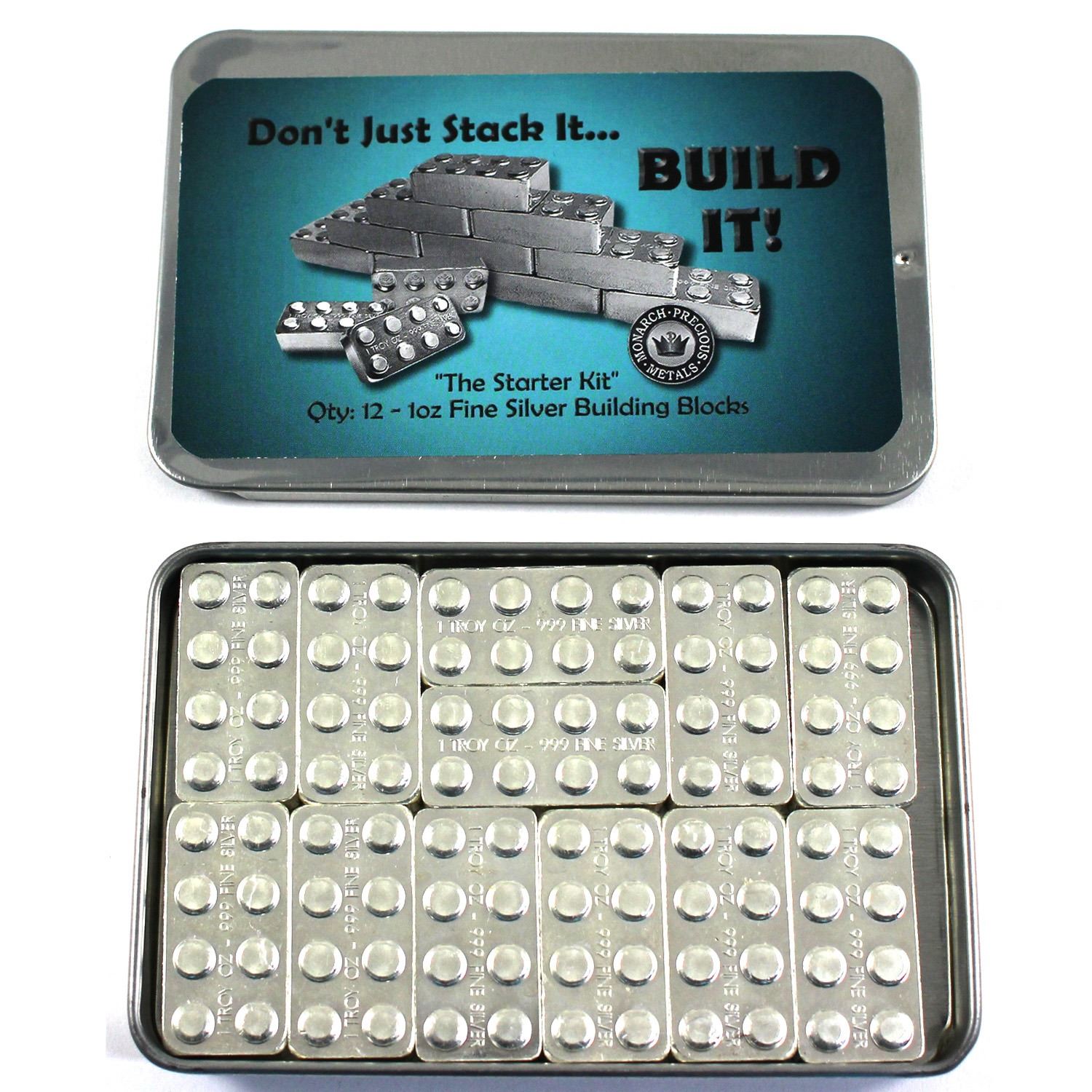 Monarch Precious Metals 12x 1oz .999 Fine Silver Building Blocks Set in Custom Sliding Tin. (TAX Exempt)