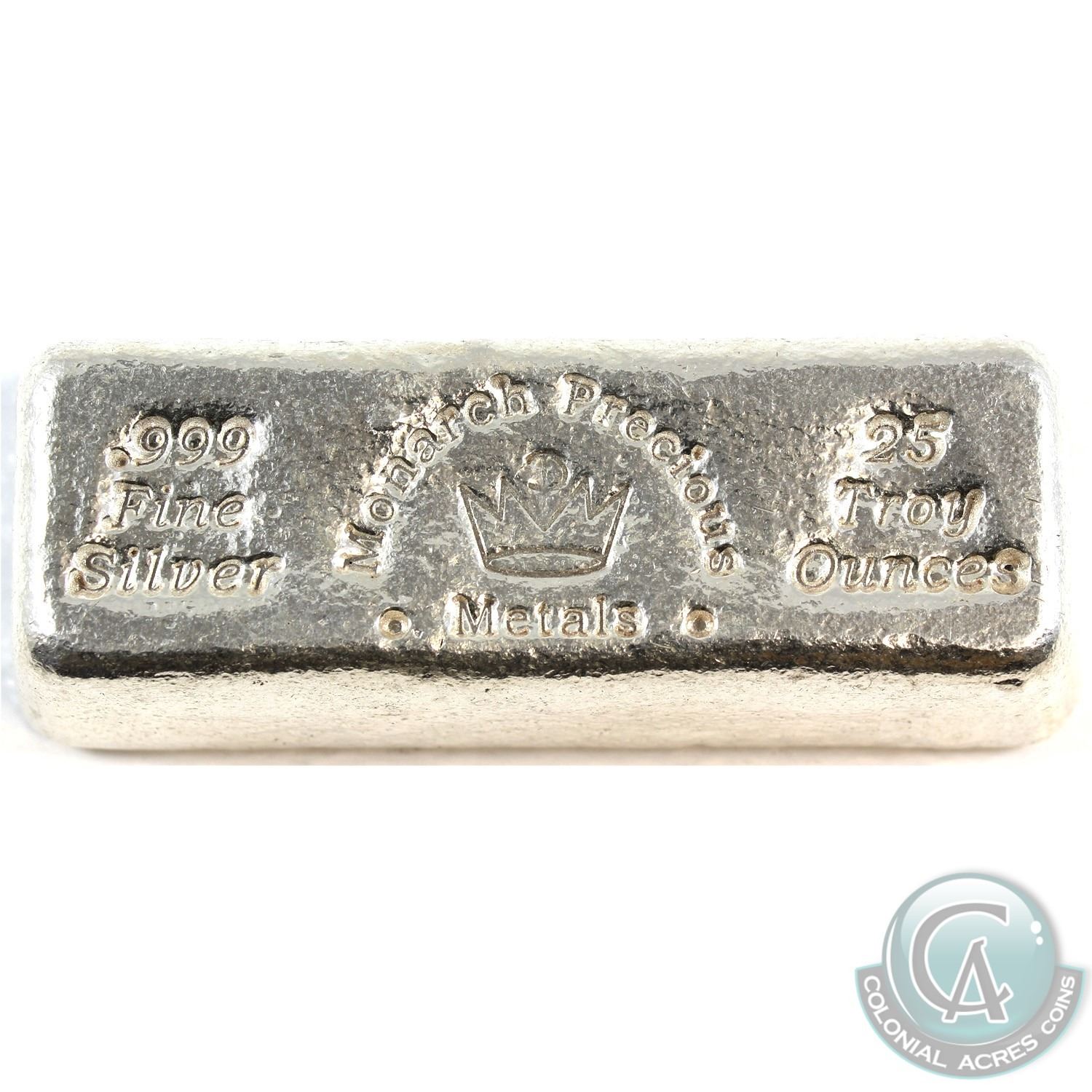Monarch Precious Metals 25oz .999 Fine Silver Poured Bar. (TAX Exempt)