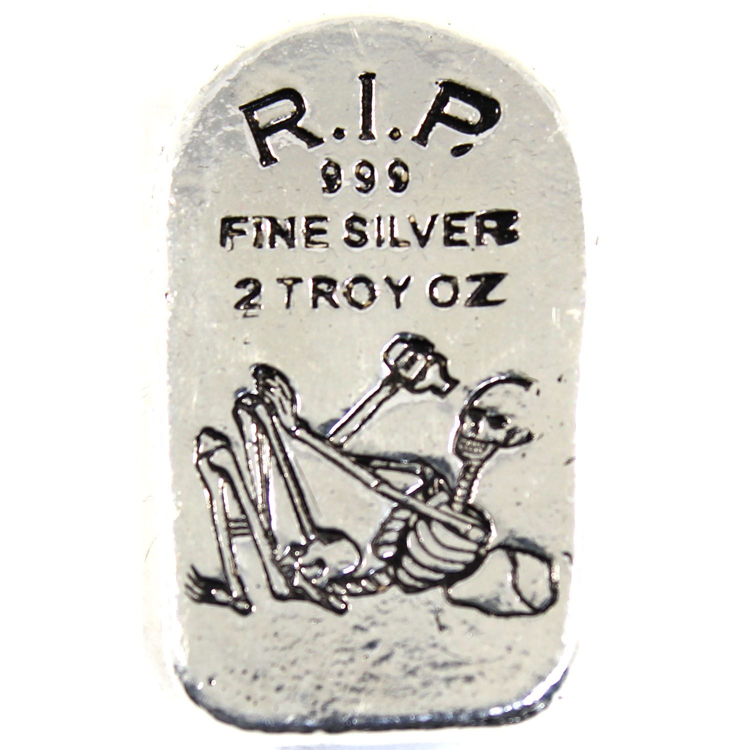 Monarch Precious Metals 2oz .999 Fine Silver Tombstone Skeleton in Drawstring Bag (TAX Exempt).