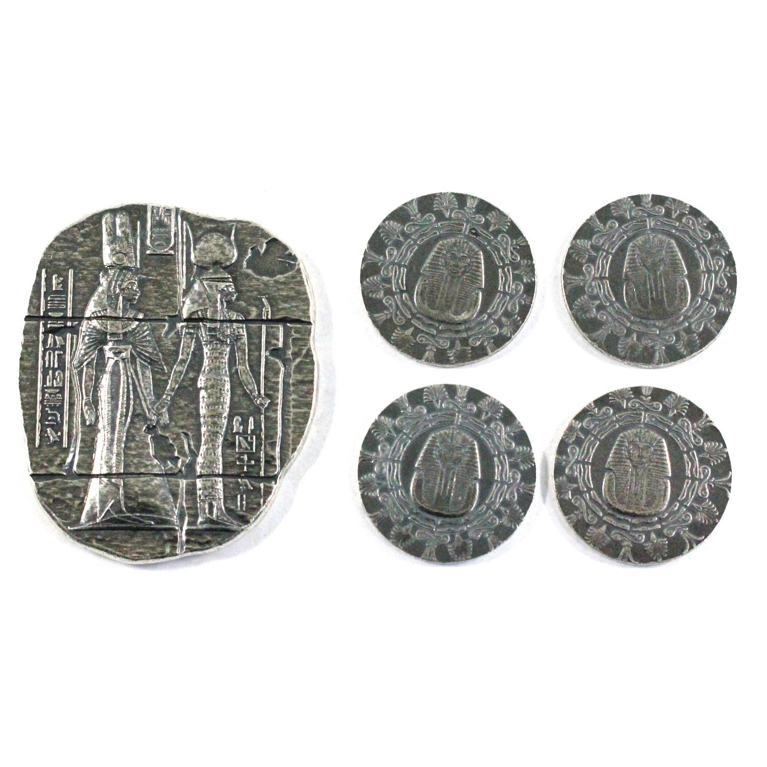 Monarch Precious Metals Egyptian Relic Goddess 2oz Fine Silver in Drawstring Cloth Bag & 4x 1/4oz King Tut Fractional Fine Silver. (TAX Exempt)