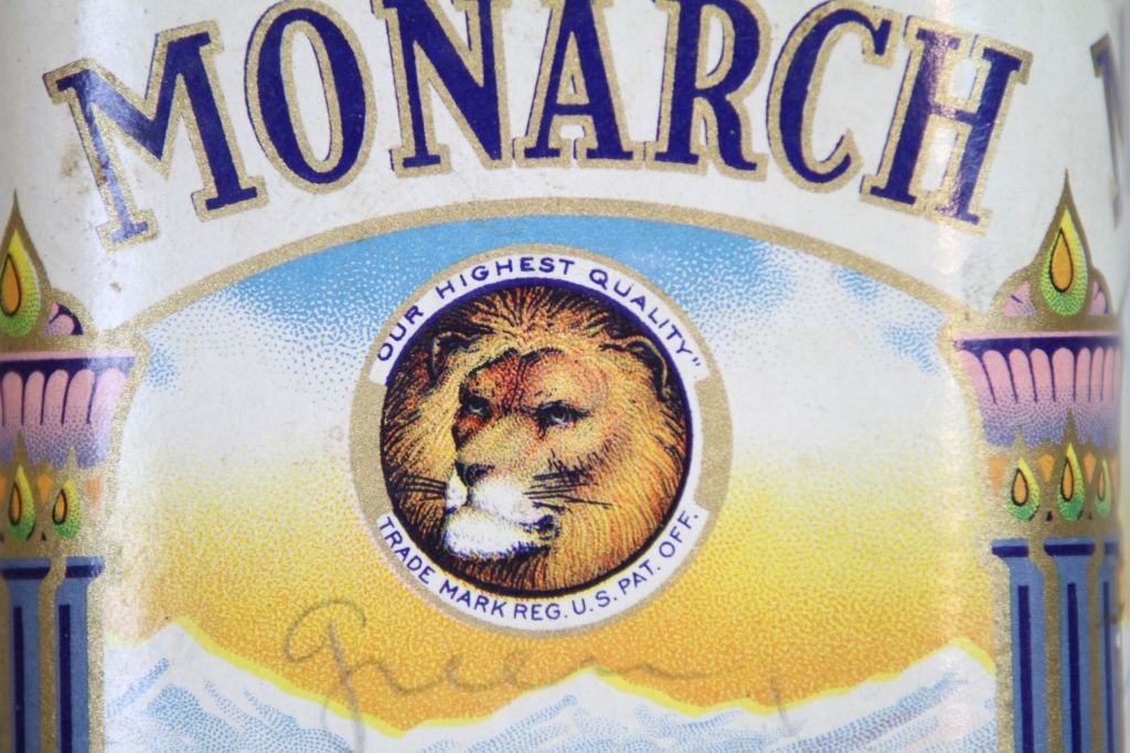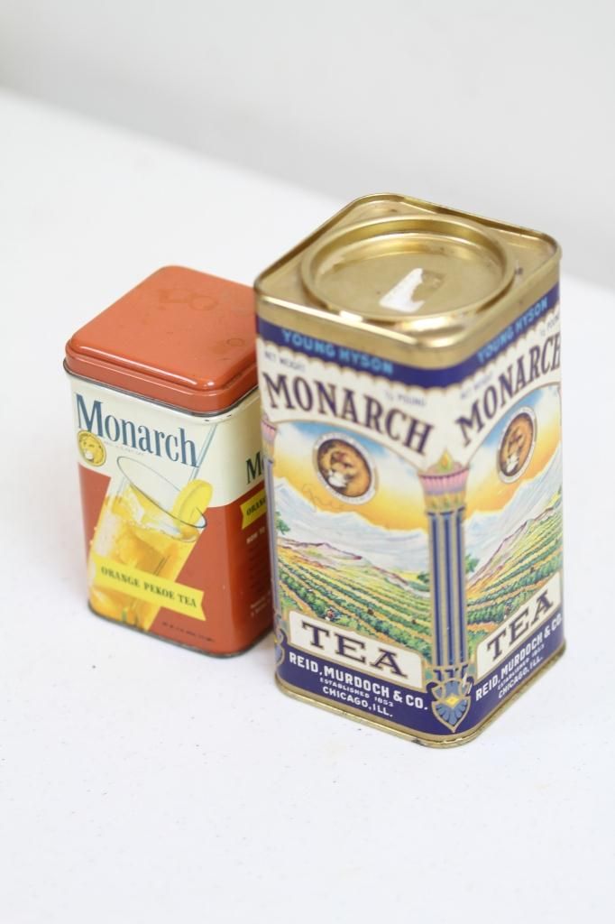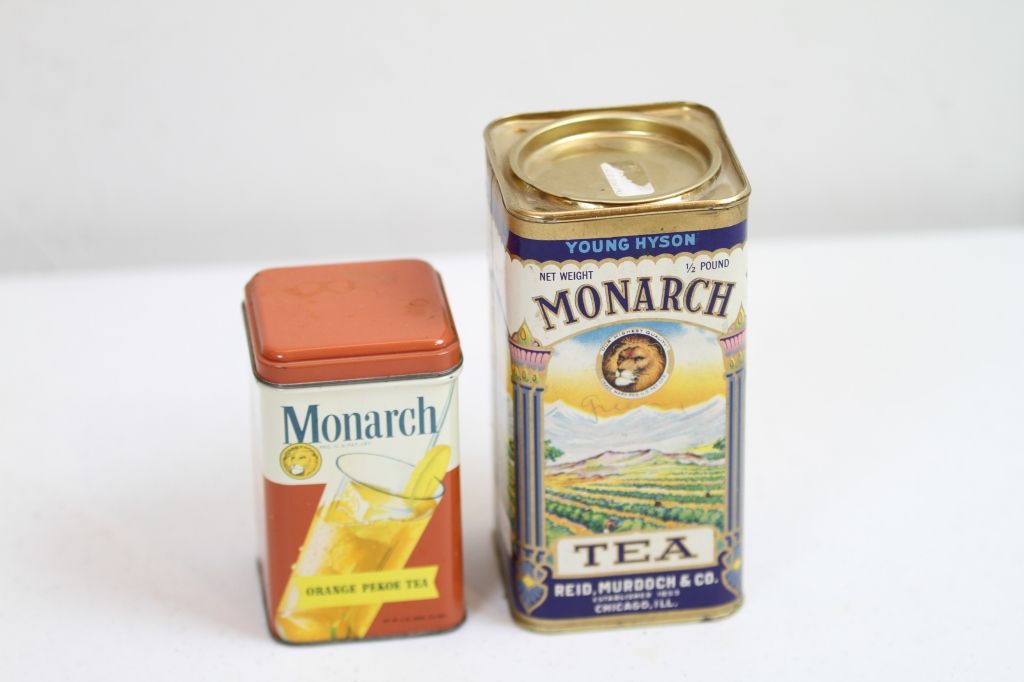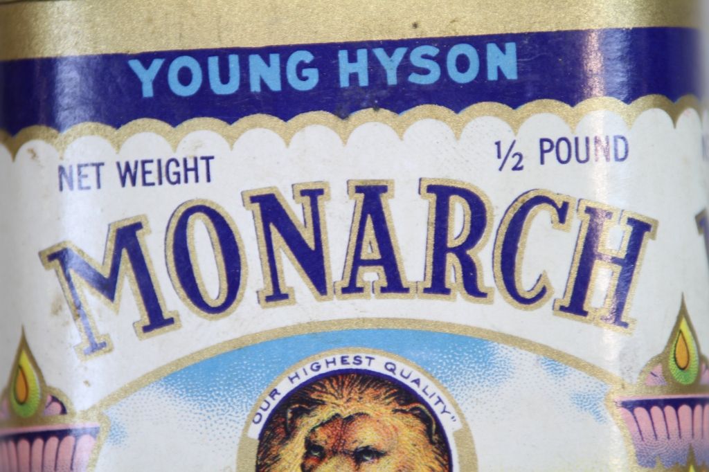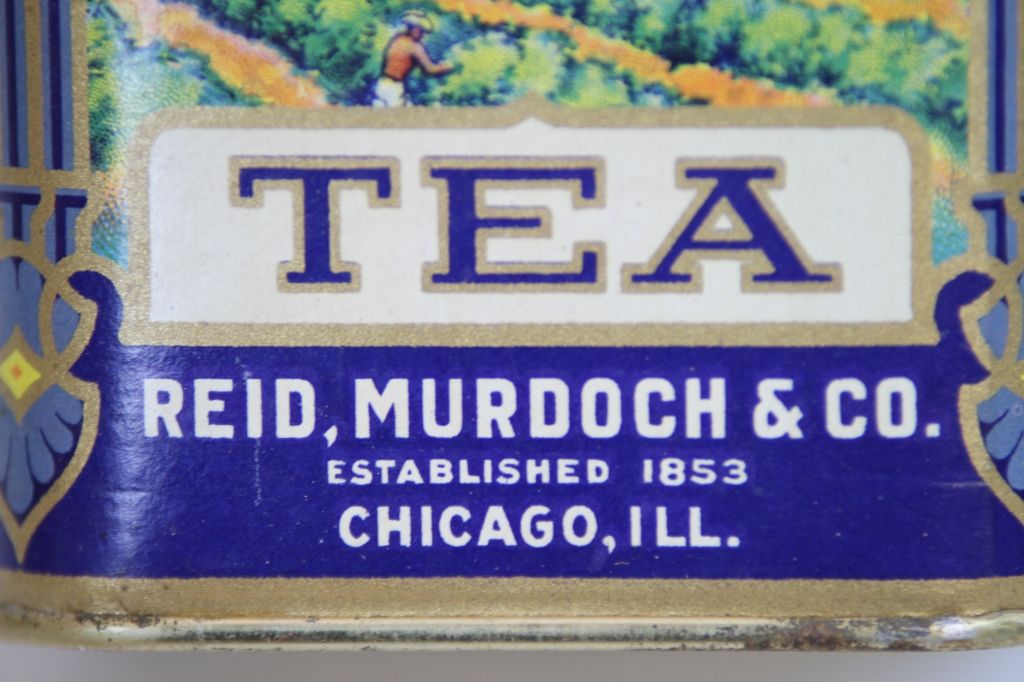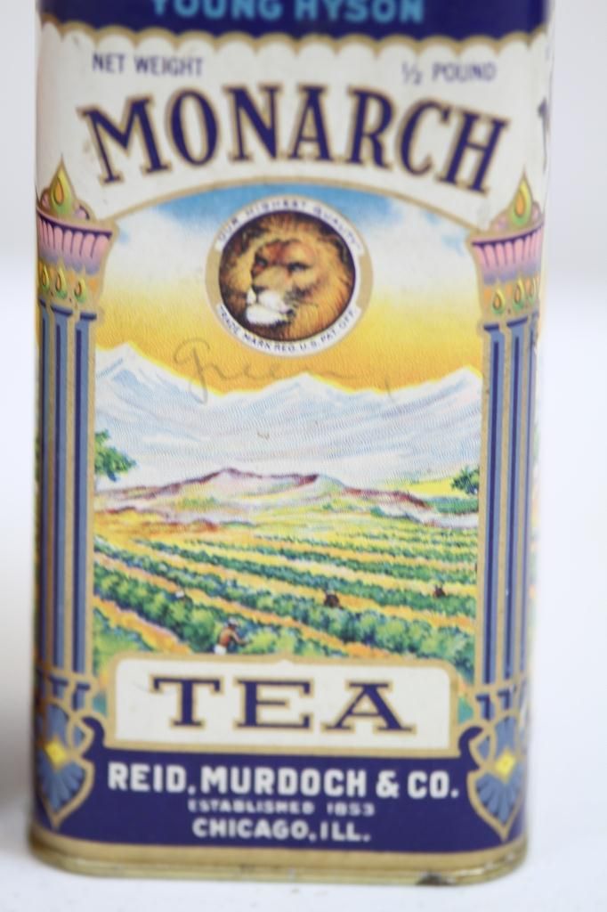 Monarch Young Hyson Tea Tin Reads, "Young Hyson Reid Murdoch % Co. 1853 Chicago Ill."