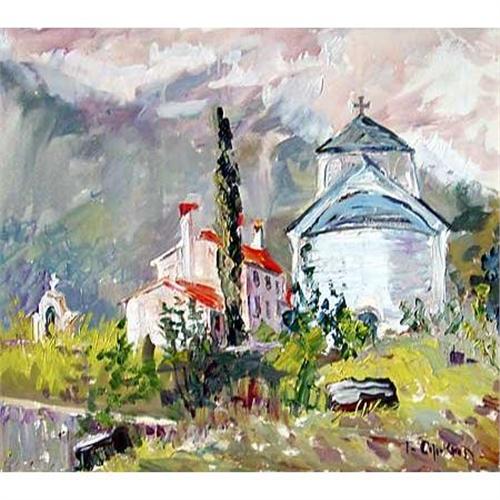 <tr><td>Title:"Monastery in Budve" oil in impressionism style</td></tr>