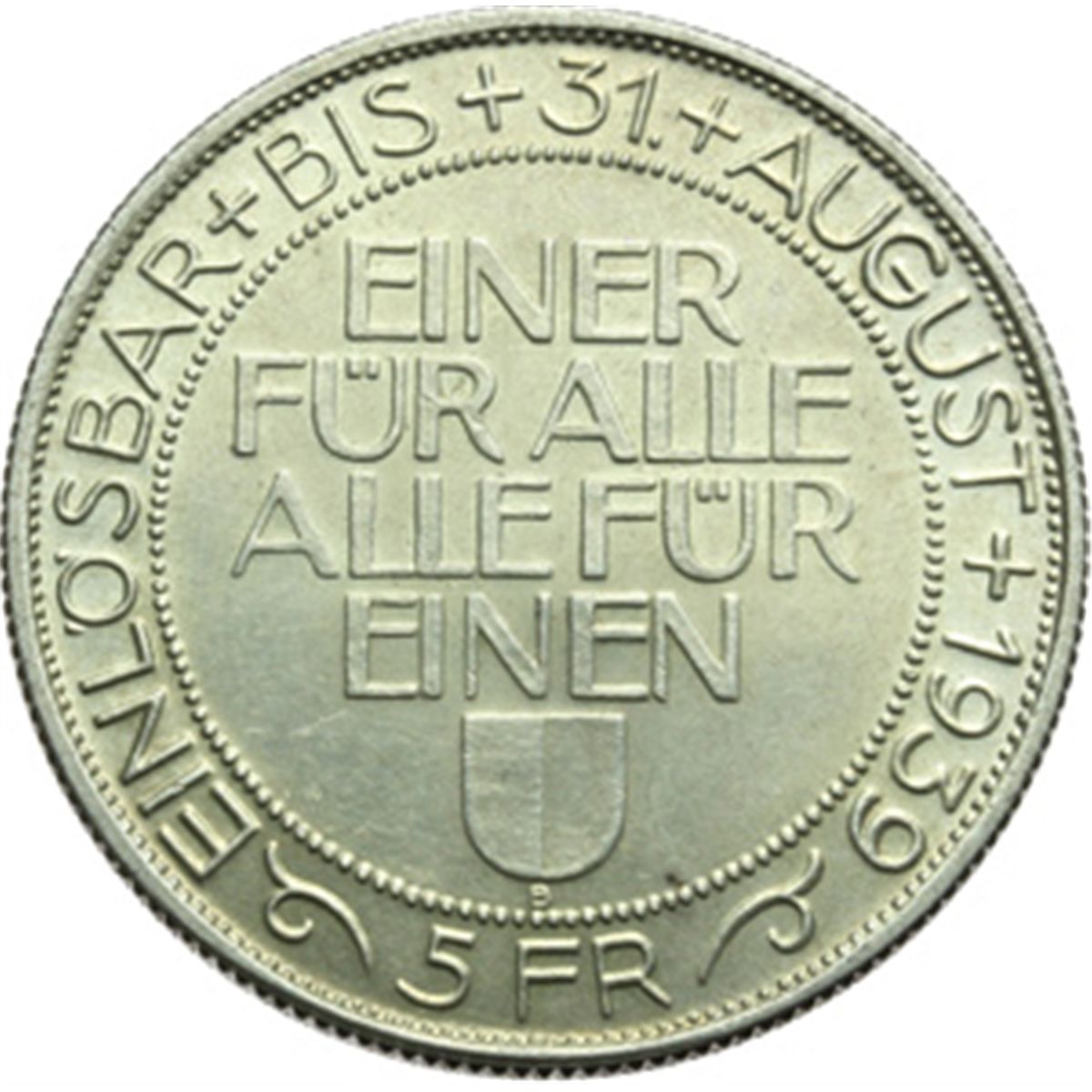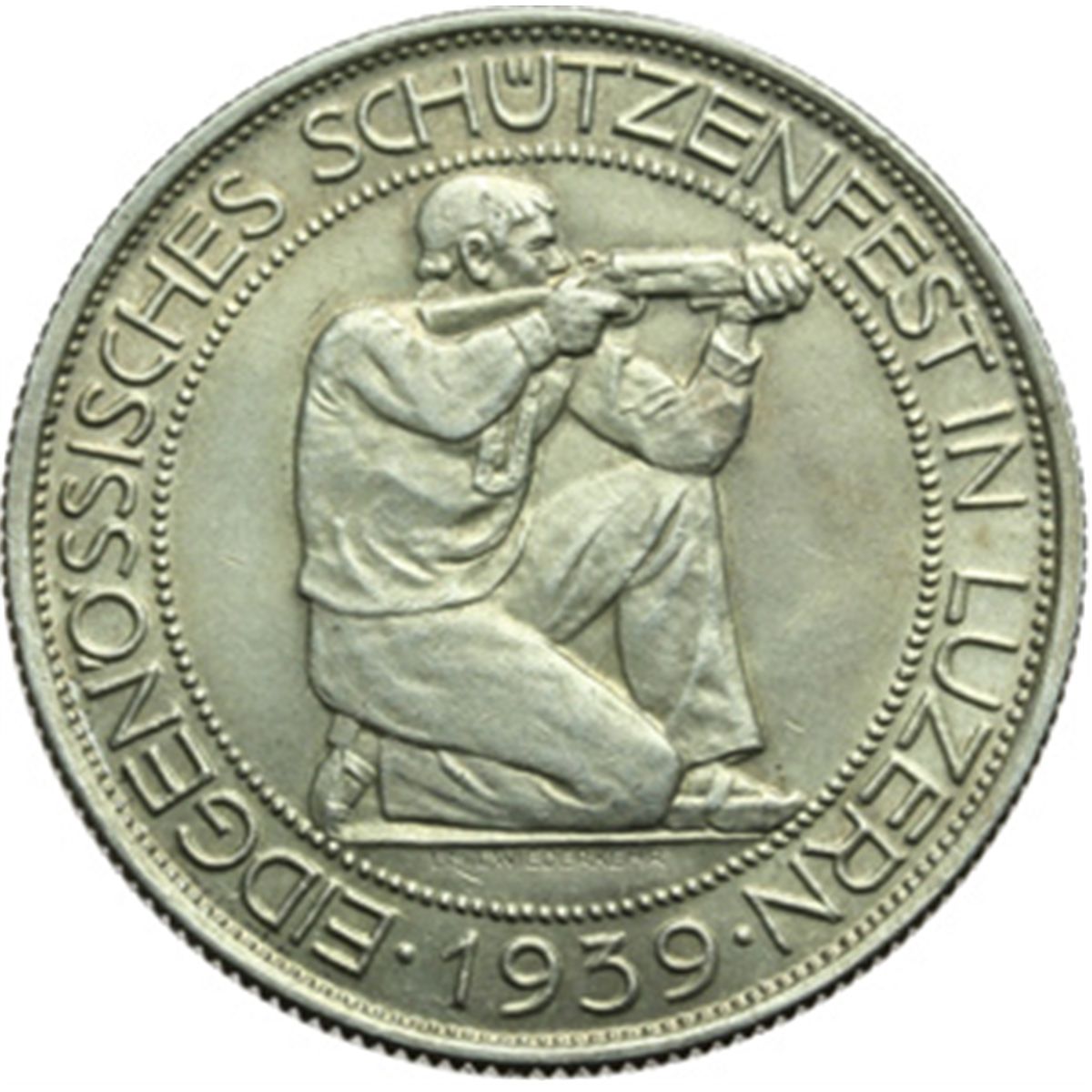 Monete e Medaglie Estere. Svizzera. 5 franchi 1939, Lucerna. HMZ 2-1345 c. AG. SPL+/qFDC.