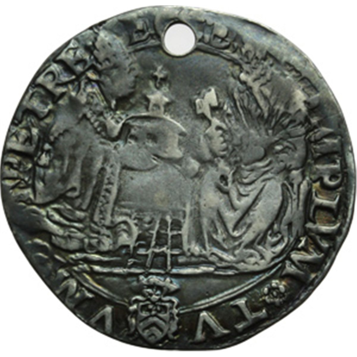 Monete e Medaglie di Zecche Italiane. Ancona. Leone X (1513-1521). Giulio. M.72. AG. g. 3.34 RR. Foro. BB.
