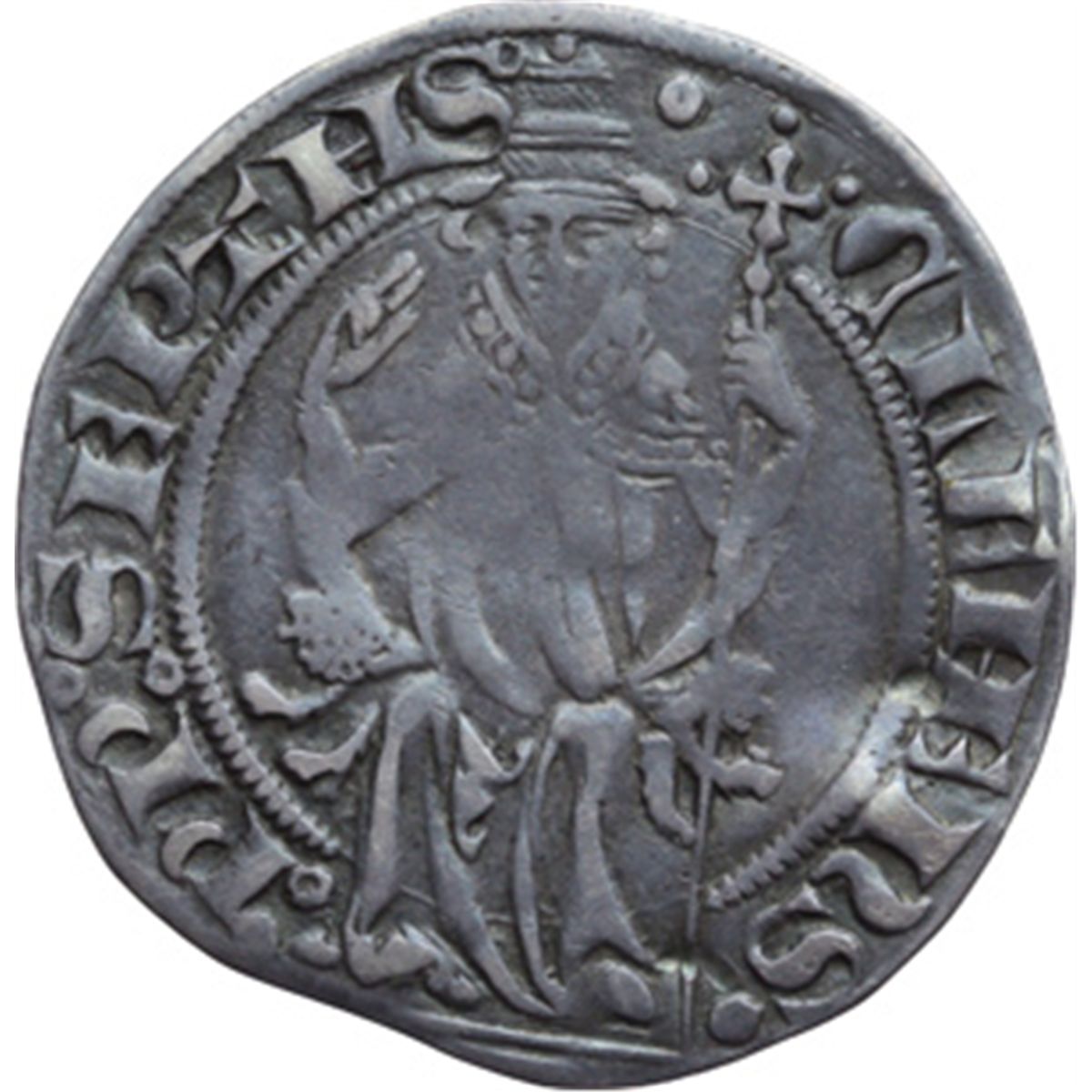 Monete e Medaglie di Zecche Italiane. Avignone. Clement VII (Robert dei Conti del Genevois). Antipapa, 1378-1394. Grosso. M. 6. Berm. 232. AG. g. 2.67 RR. Tondello ondulato. BB.