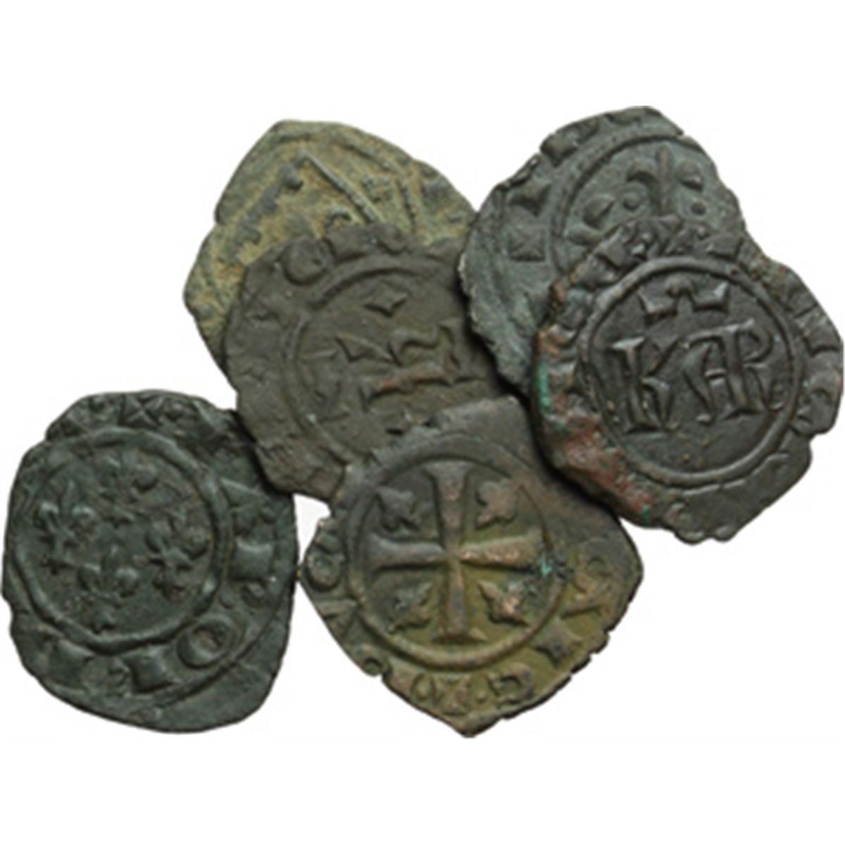 Monete e Medaglie di Zecche Italiane. Brindisi o Messina. Carlo I d'Angiv= (1266-1285). Lotto di 6 denari. MI. qBB:BB.