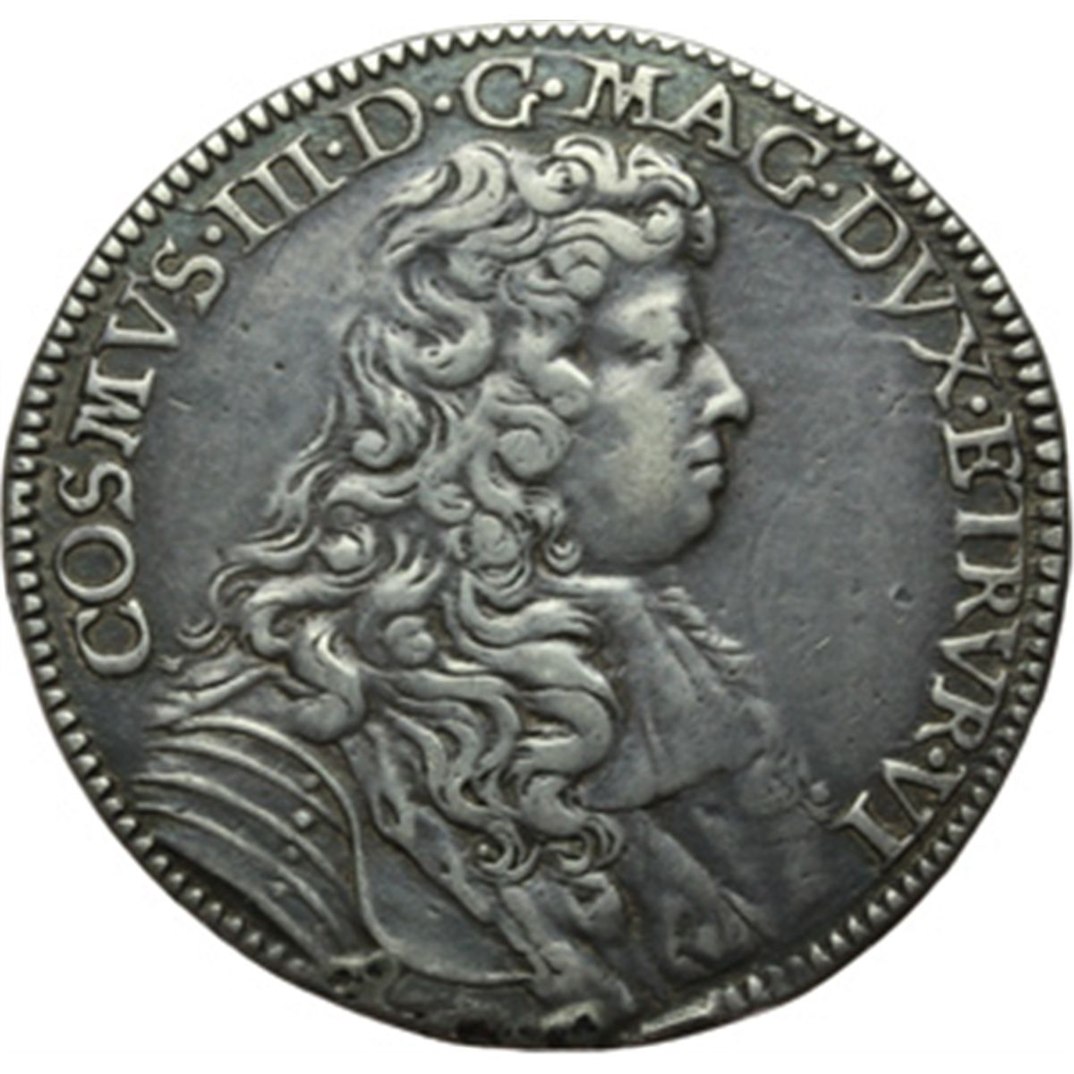 Monete e Medaglie di Zecche Italiane. Firenze. Cosimo III (1670-1723). Mezza piastra 1676. Galeotti XII, 1. AG. g. 15.40 Lievi tracce di appiccagnolo. BB+.