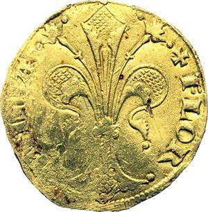 Monete e Medaglie di Zecche Italiane. Firenze. Repubblica (sec. XIII-1532). Fiorino d'oro largo, I semestre 1450/II semestre 1460. MIR 25. AU. Schiacciature, altrimenti qSPL.